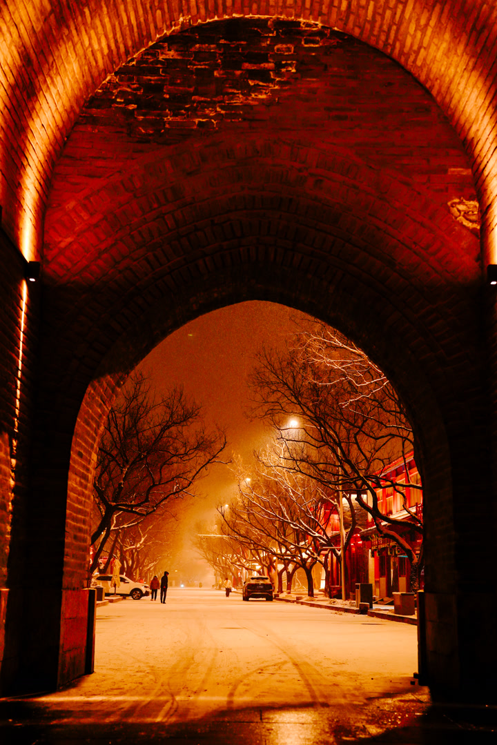 1月17日夜,雪落宛平城。高大的城门,古香古色的建筑,都被冰雪和灯光点亮,给人“穿越”时空之感。记者从丰台文旅集团获悉,宛平城的夜景照明今晚还将继续点亮,欢迎大家一起来“穿越”古城拍雪景。