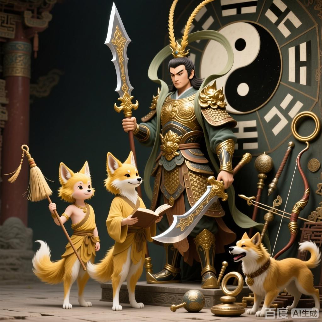 正是在这种背景下,杨戬于五夷山收徒一事,便显得格外意味深长。书中描写,杨戬是因宝物光华吸引而下山,遭遇“怪物”袭击,追入山洞后得到了日后成为其标志性武器的三尖两刃刀与杏黄袍。随后,两名“金毛童子”出现,其过程颇有“献宝投诚”的意味。从字面描述分析,“金毛童子”显然非正常人类,极大可能是犬类或狐类等灵兽修炼而成的妖仙。他们的出现并非偶然,其背后站着的是五夷山的地主——显道真君。这位真君在封神大战中立场鲜明地支持阐教,不仅派出了麾下散仙萧升、曹宝(以落宝金钱闻名,对坑死截教最强大罗金仙赵公明贡献巨大)、乔坤等人助阵,更在此刻,以赠予杨戬神兵宝衣为桥梁,将自己麾下的两名妖仙童子送到了杨戬门下,成为阐教四代核心弟子。