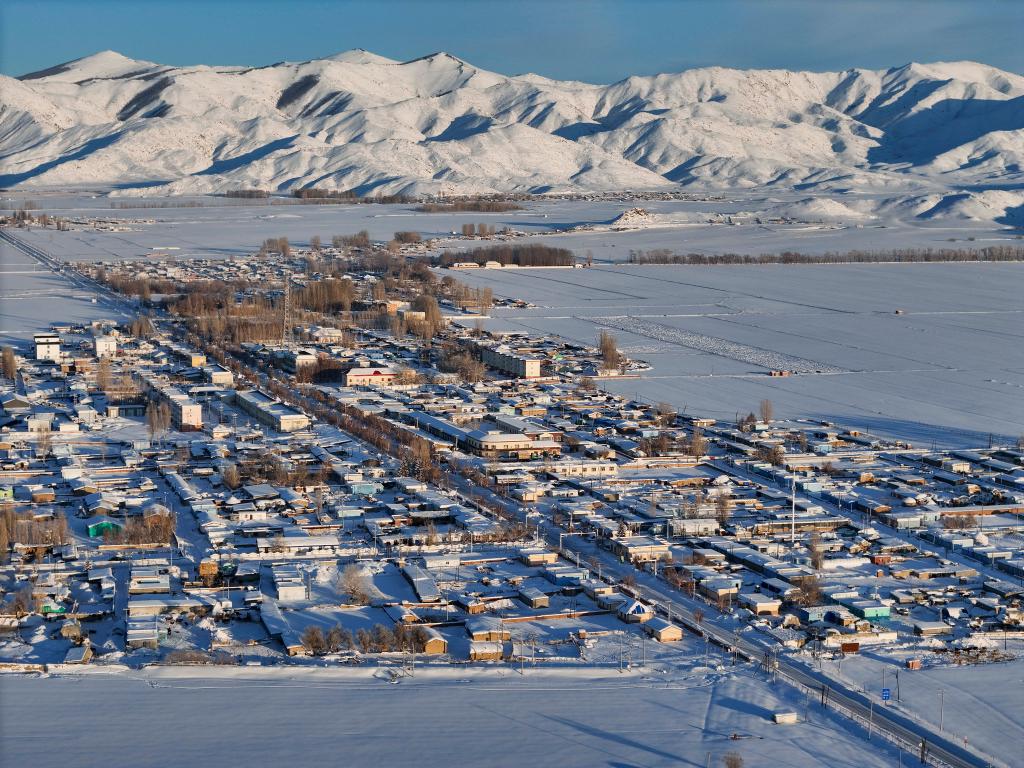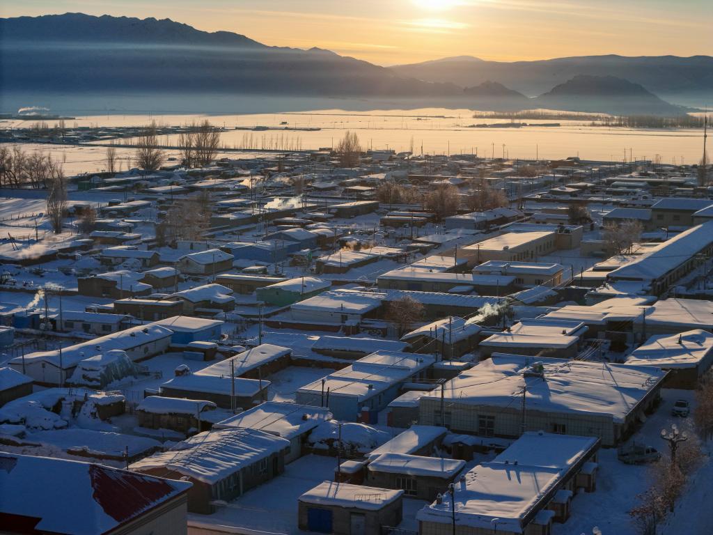 这是1月16日拍摄的新疆富蕴县吐尔洪乡政府及周边村庄(无人机照片)。新华社记者 胡虎虎 摄