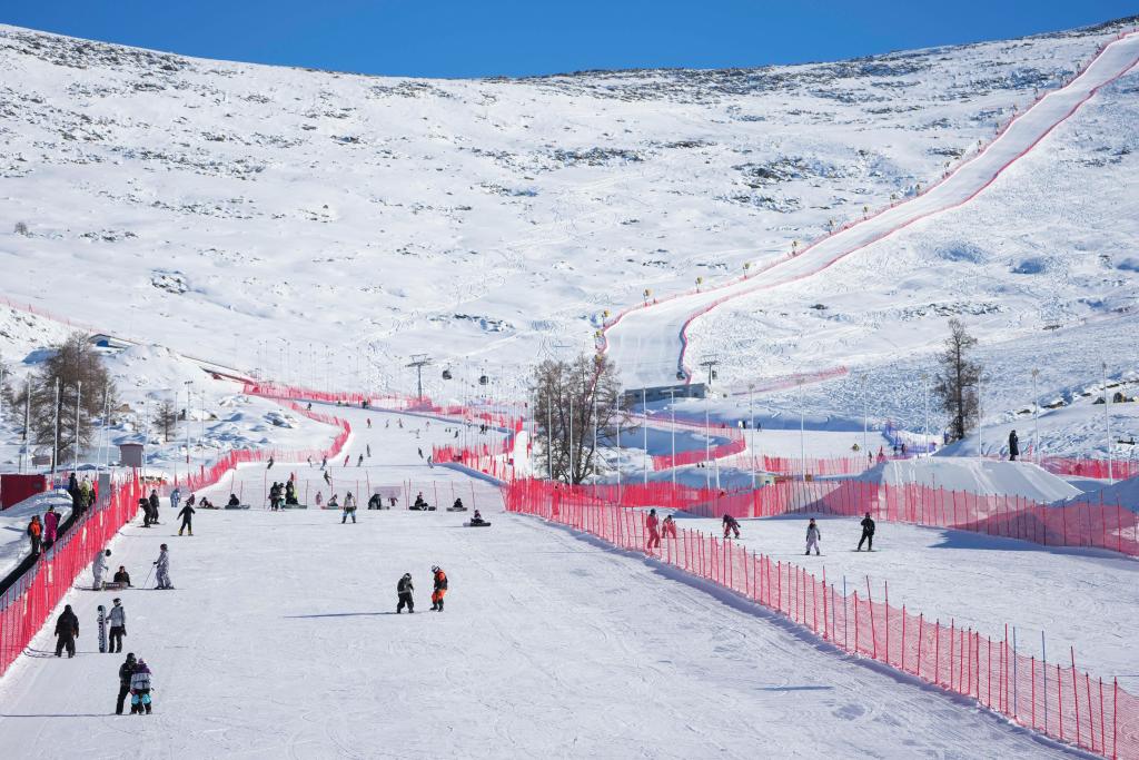 1月17日,雪友在可可托海国际滑雪度假区滑雪。新华社记者 胡虎虎 摄