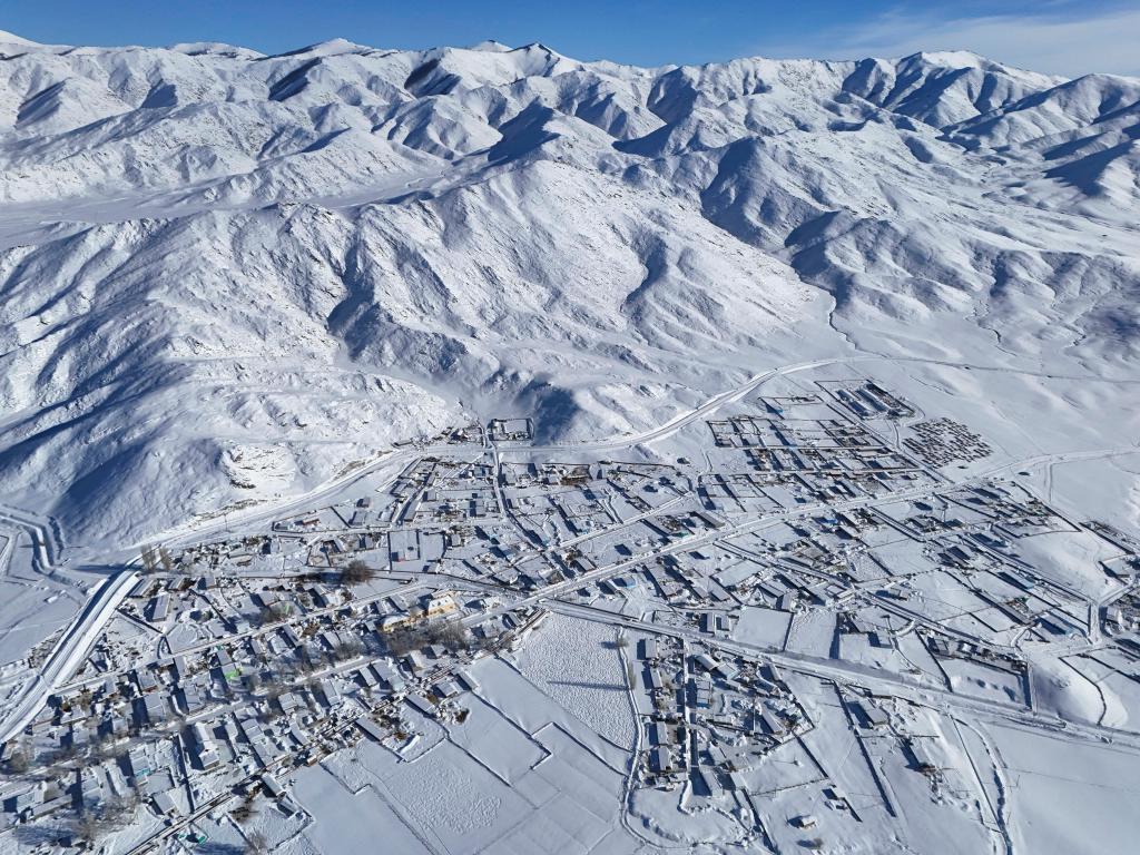 这是1月16日拍摄的新疆富蕴县吐尔洪乡达尔肯村(无人机照片)。新华社记者 胡虎虎 摄