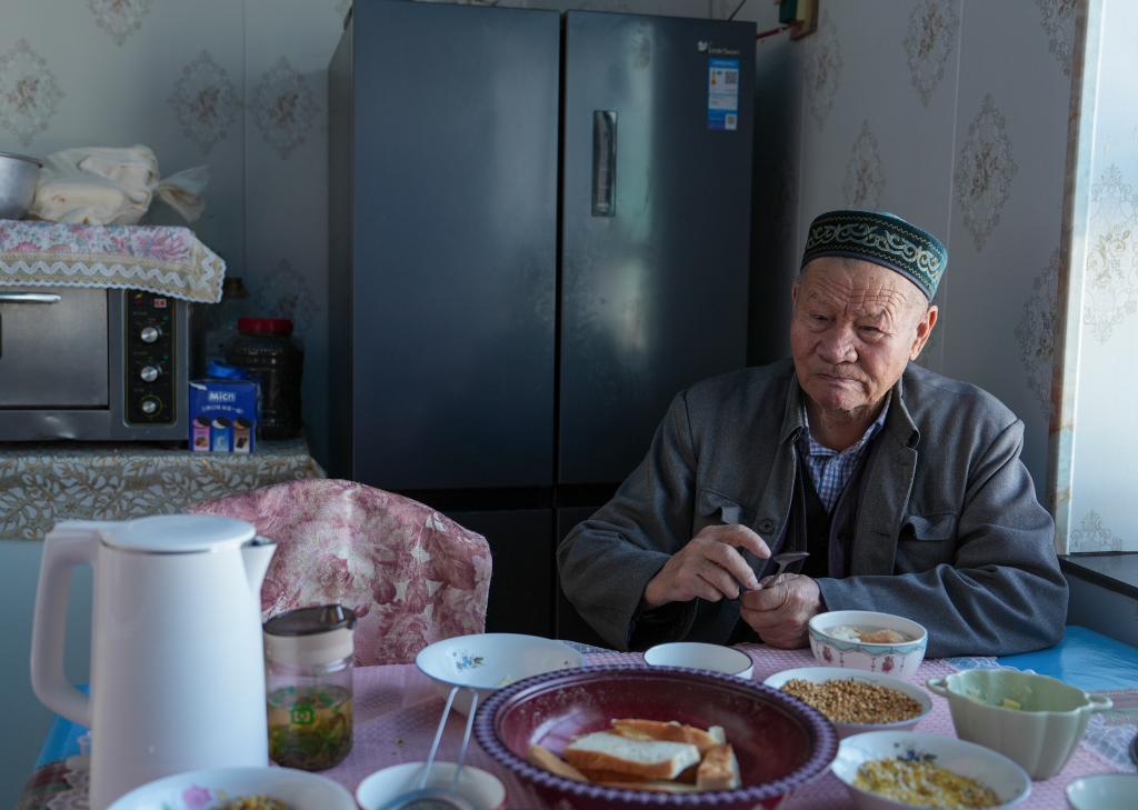 1月16日,吐尔洪乡的村民在家中吃午餐。新华社记者 胡虎虎 摄
