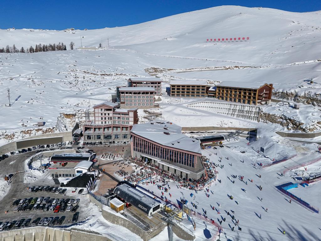 这是1月17日在新疆富蕴县拍摄的可可托海国际滑雪度假区一角(无人机照片)。新华社记者 胡虎虎 摄