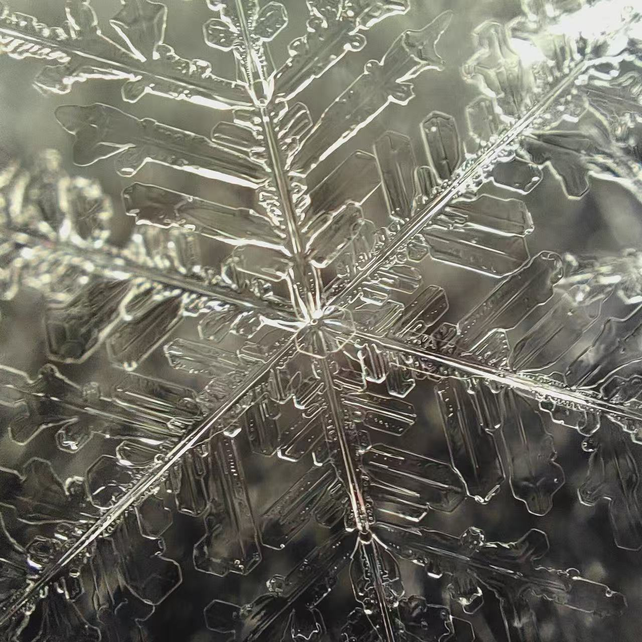 2026年的第一场雪,在30倍显微镜头下有着别样的惊喜。显微镜头像一把特别的钥匙,让雪花展现出微观世界里才可看见的细节——晶莹剔透,逐渐消融。