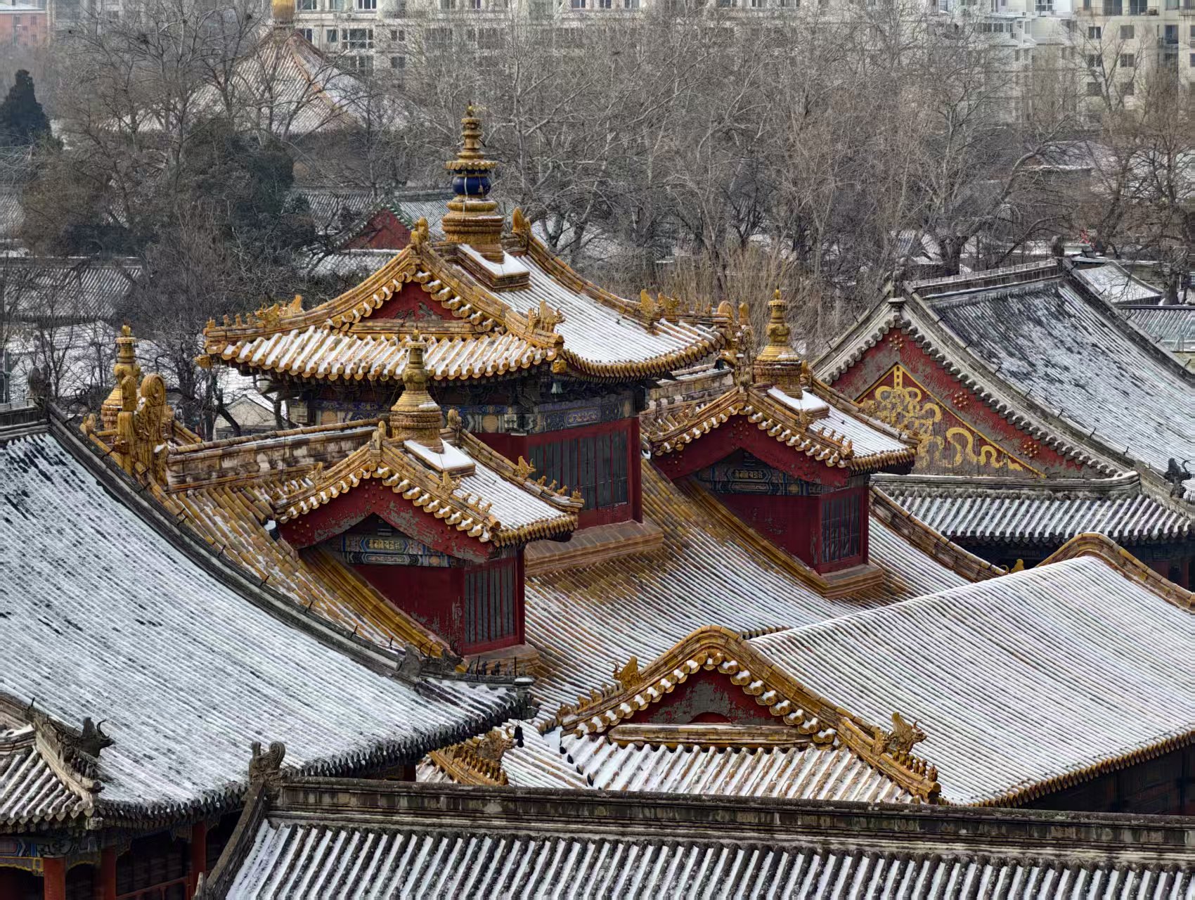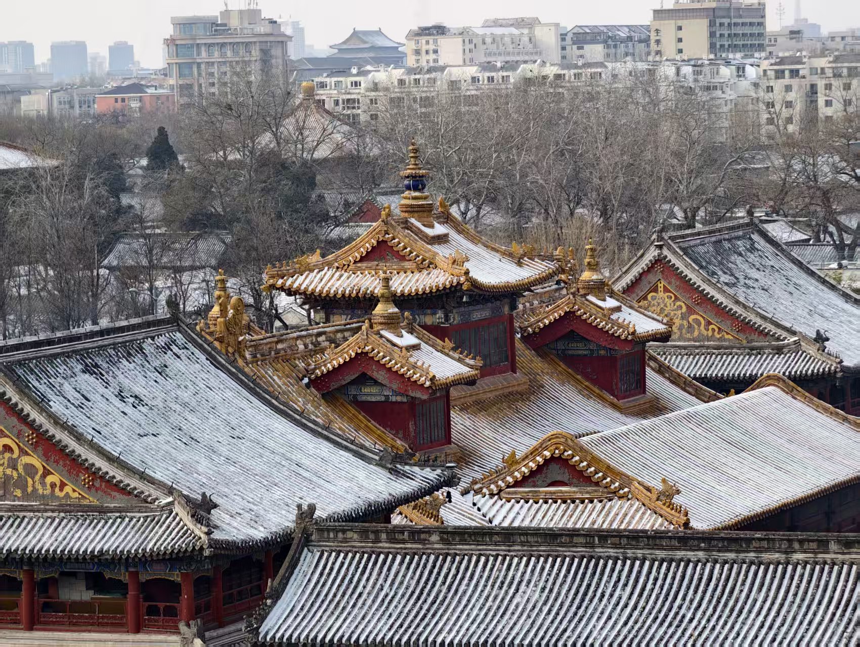 紫禁雪晴望雍和,一重金瓦一重天