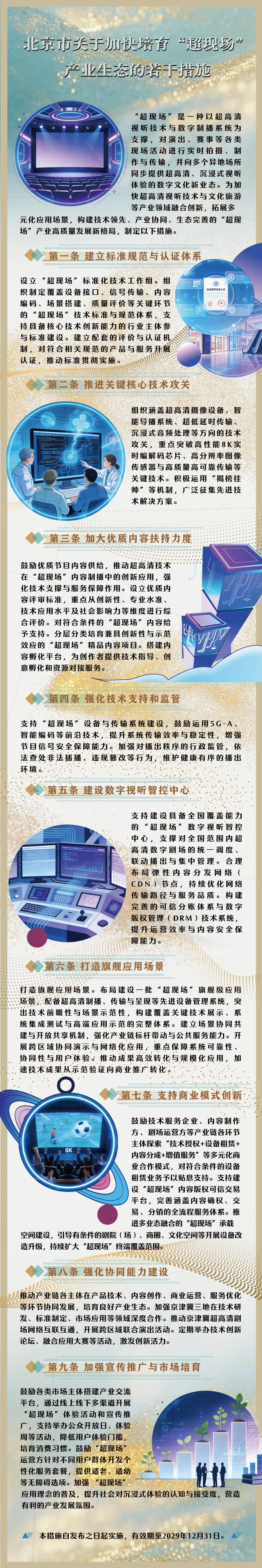 北京市广电局、北京市经济和信息化局于1月15日上午联合召开“超现场”政策通气会,正式发布《北京市关于加快培育"超现场"产业生态的若干措施》,全文如下——