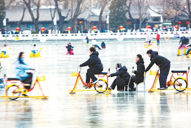 什刹海,市民和游客尽情享受这里独有的冬日浪漫。张立新 摄