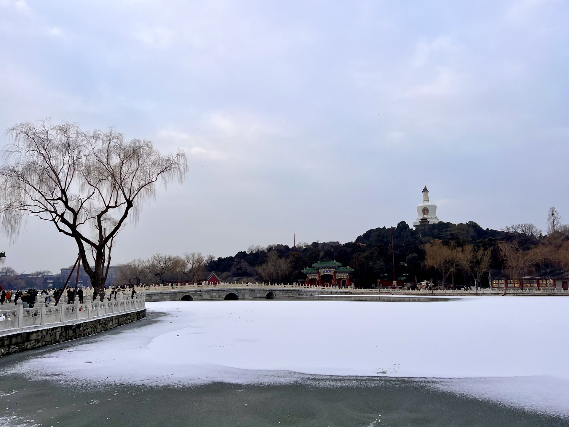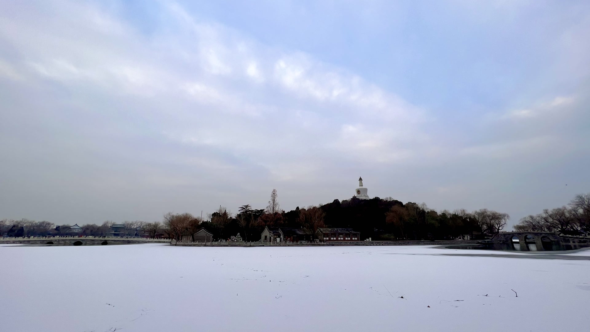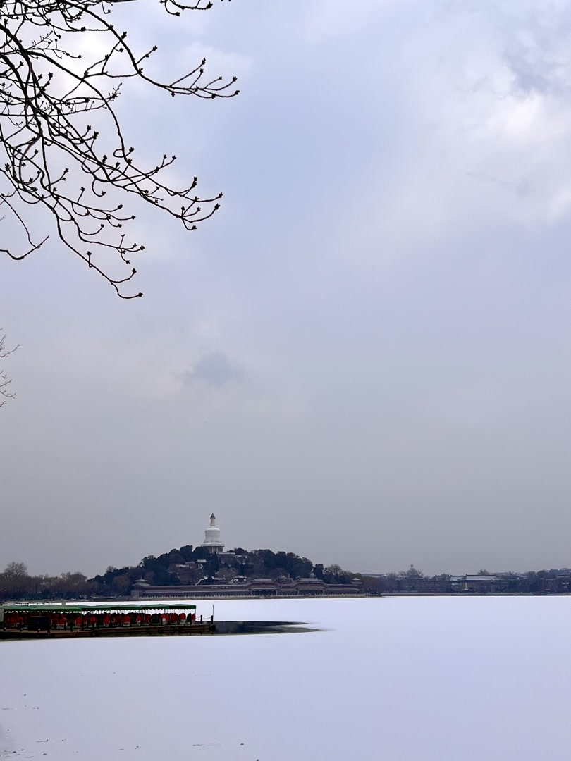 雪后的北海,一半是冰封的素白,一半是水鸟的灵动。白塔静静伫立在琼华岛,像守着一整个冬天的温柔。野鸭在冰面踱步,鸳鸯在水间游弋,连风里都裹着老北京独有的松弛感。
