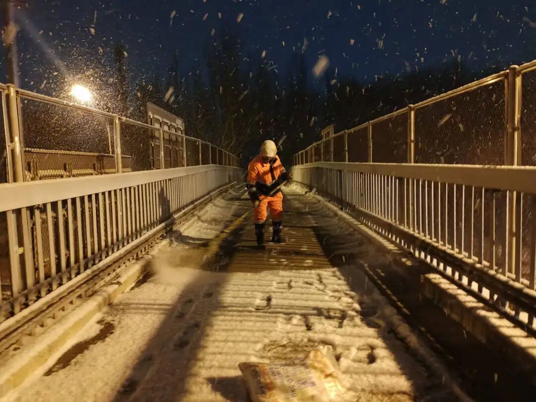 面对持续降雪带来的考验,扫雪铲冰作业单位持续加强清扫力量和设备投入。截至目前,全区已累计出动扫雪铲冰作业人员6969人次,作业车辆306车次,各类机械、人工除雪设备1830台次,科学适量撒布低氯低钠固态融雪剂30吨,液态融雪剂782立方米,确保除雪作业高效推进的同时,兼顾生态环境保护要求。本次作业遵循“先立交、后道路”“先重点、后一般”及“先打通一条路,再向两侧扩展”的原则,有序组织、连续作业。