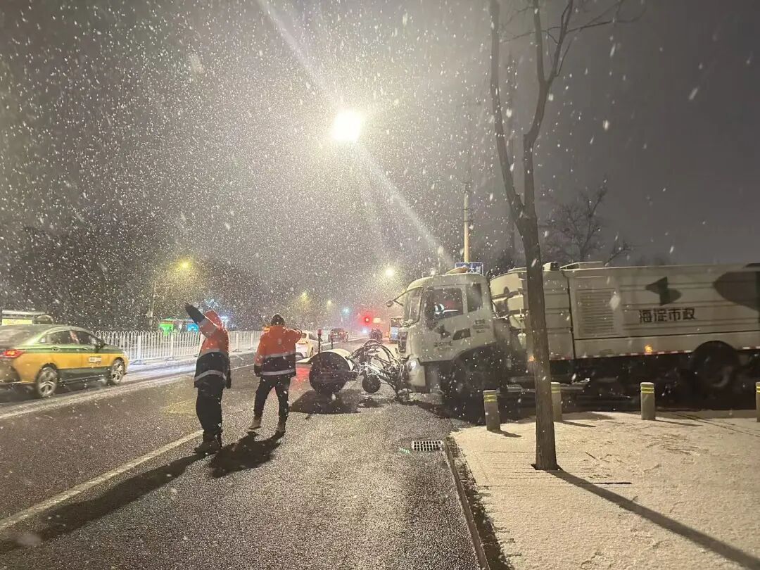 面对这场降雪,海淀区城市管理委(交通委)密切关注雪情变化,第一时间启动应急响应机制,坚持“以雪为令、闻雪而动”,迅速统筹调配力量,科学部署作业方案,全面开展扫雪铲冰工作,切实保障城市道路通行条件和市民出行安全。