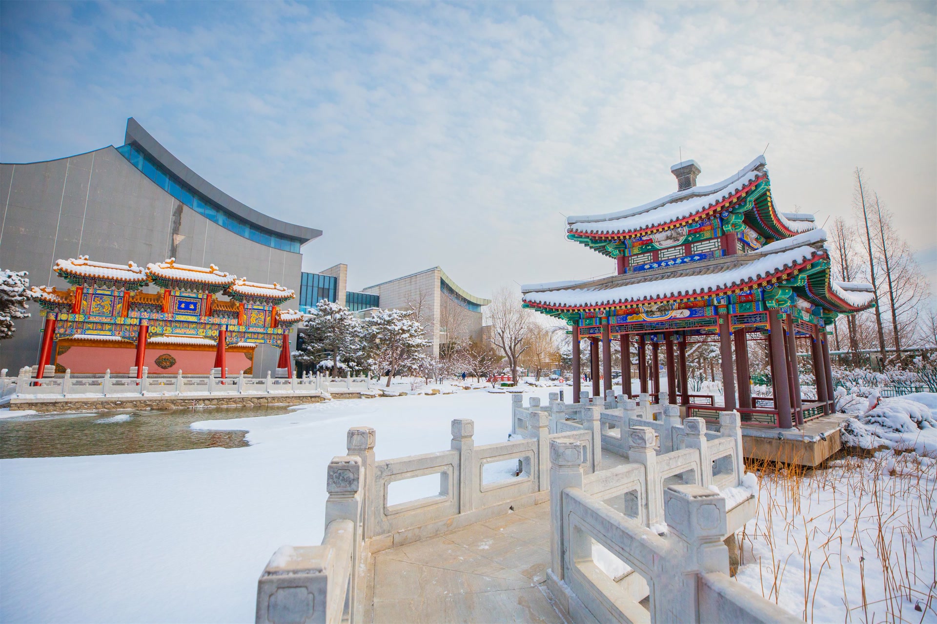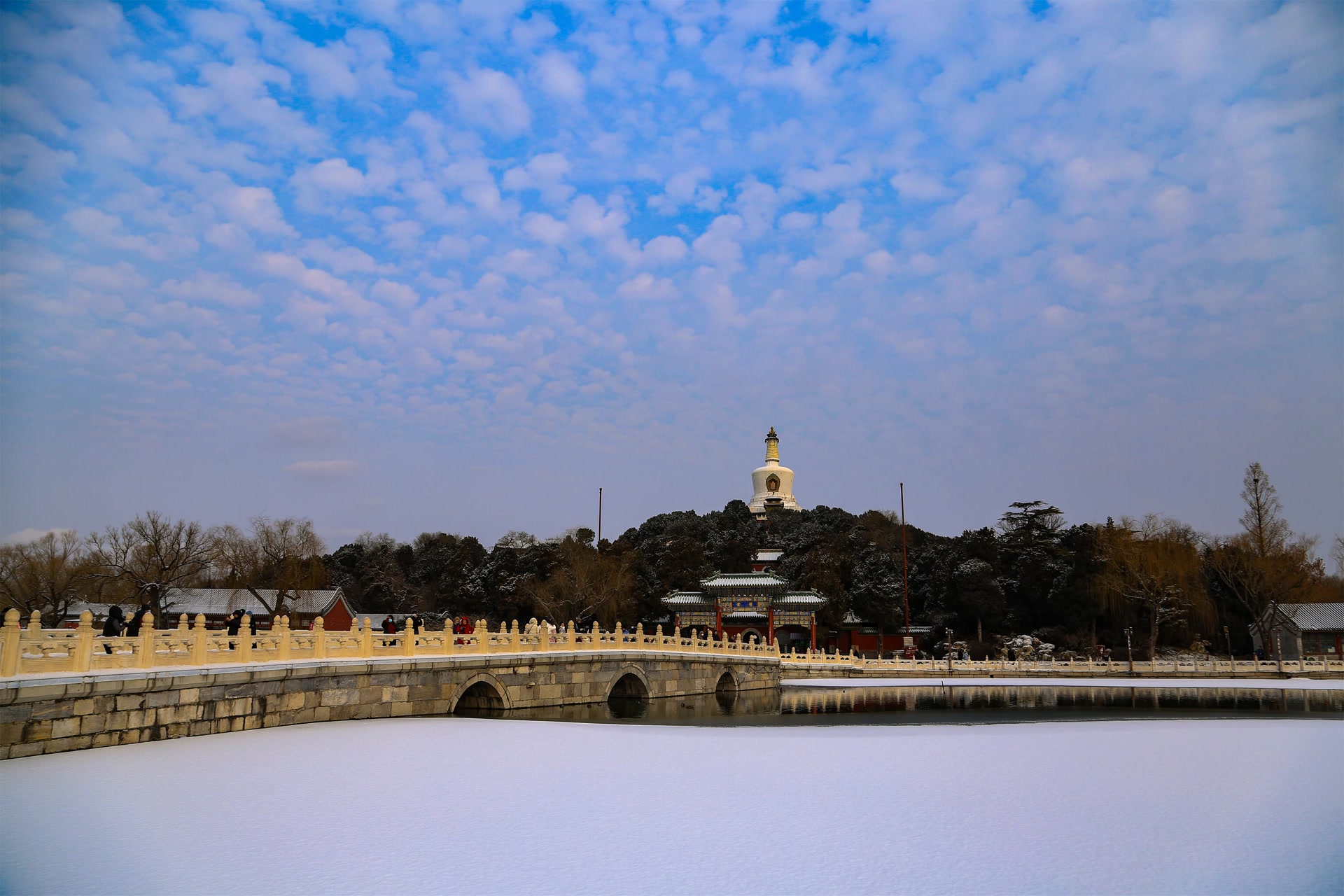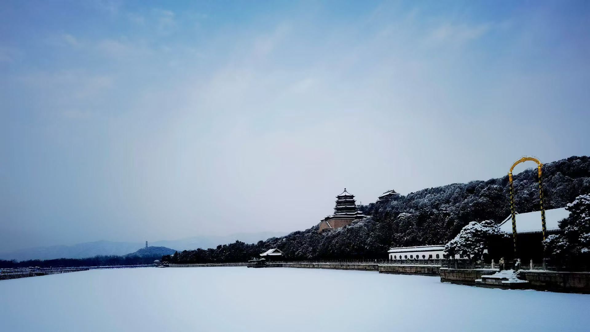 雪后的颐和园银装素裹,构成一幅美丽的水墨画。树枝挂雪,宛如朵朵棉桃;湖面铺白,恰似无瑕白玉。皇家园林的雪景别具一格,令游客回味无穷。