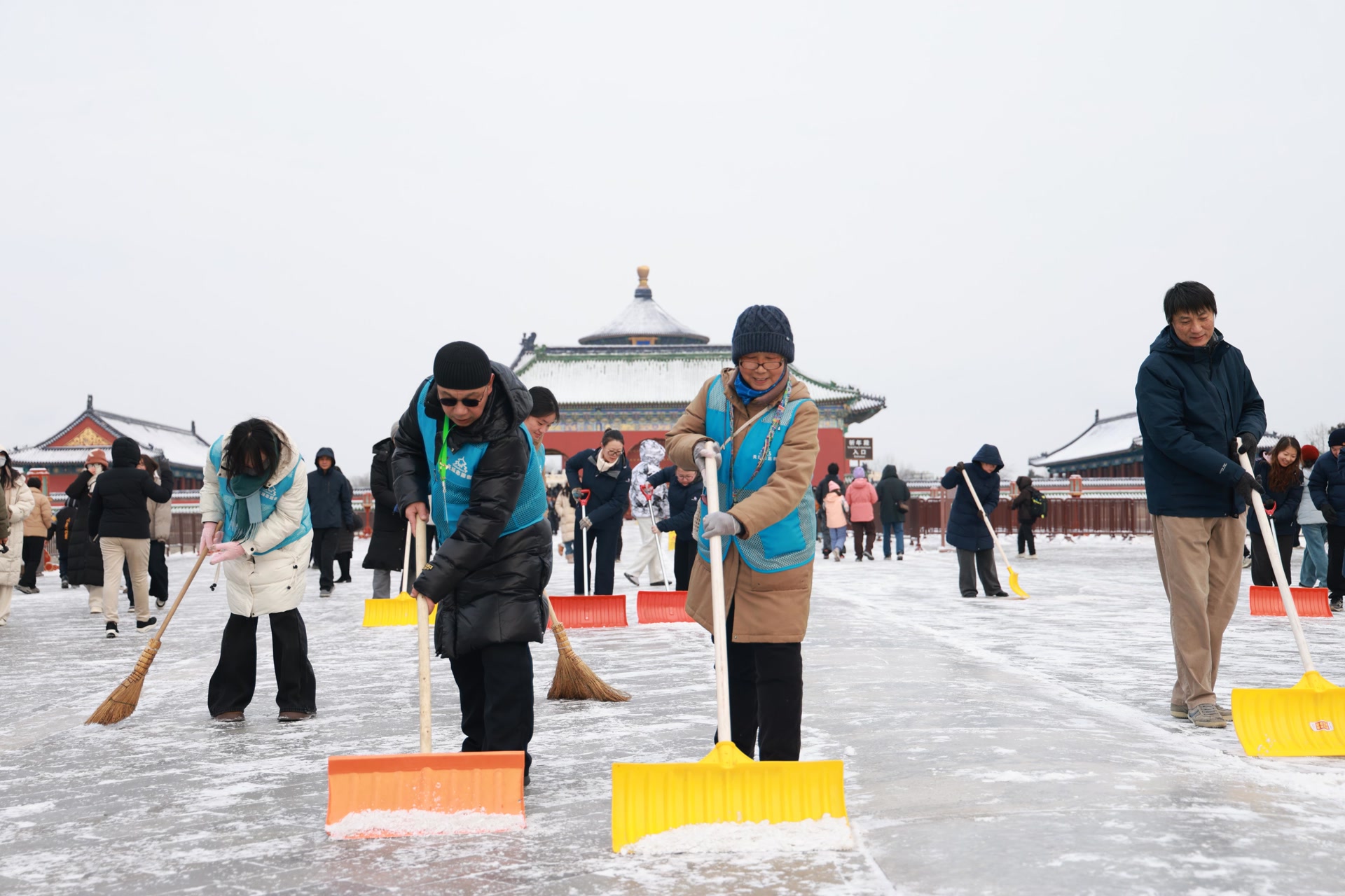 为保障游园安全,兼顾道路通行和赏景戏雪需求,市公园管理中心提前部署,组织职工开展全方位服务保障工作。18日清晨,工作人员携扫雪工具,配合推雪车、除雪机优先打通主要游览干线和核心景区景点,对门区、主干道等区域“随下随清”,同时为古树名木“掸雪减负”,在保障游客安全通行的基础上,合理保留自然雪景风貌,为市民游客打造出安全又出片的拍照打卡场景。针对易滑区域,公园增置千余处“道路湿滑”警示牌,铺设防滑垫、防滑地毯万余延米,通过广播、LED显示屏循环提示安全事项。同时优化暖心服务,148处固定卫生间实现热水洗手全覆盖,91处免费热水点位设置易识别标识,112处热饮售卖点提供多样热饮,全方位保障游客冬日游园体验。