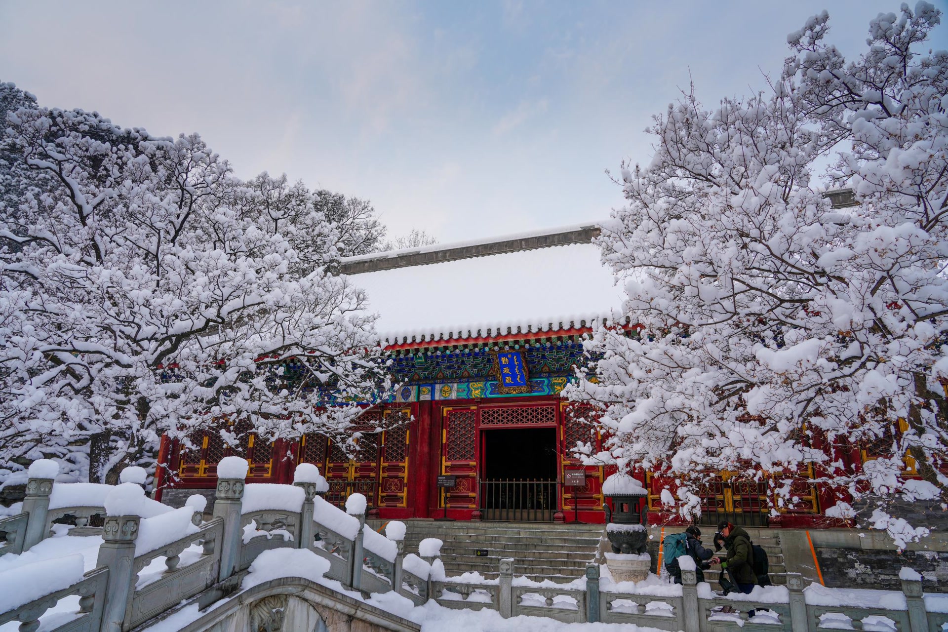 香山的雪格外厚,深处能达膝盖。作为燕京八景之一,西山晴雪的意境在香山公园全然展现——古建亭台在素雪中更显庄重,山林脉络于朦胧间愈显诗意。无需远行,京城之中便可收藏这片冰清玉洁。