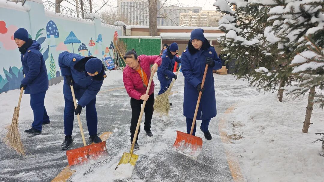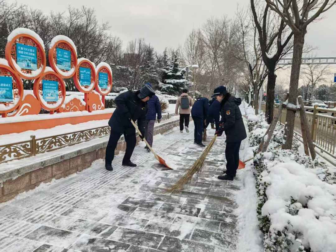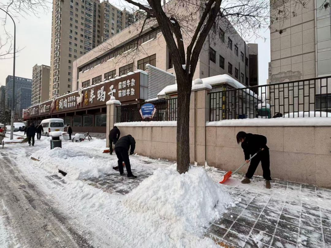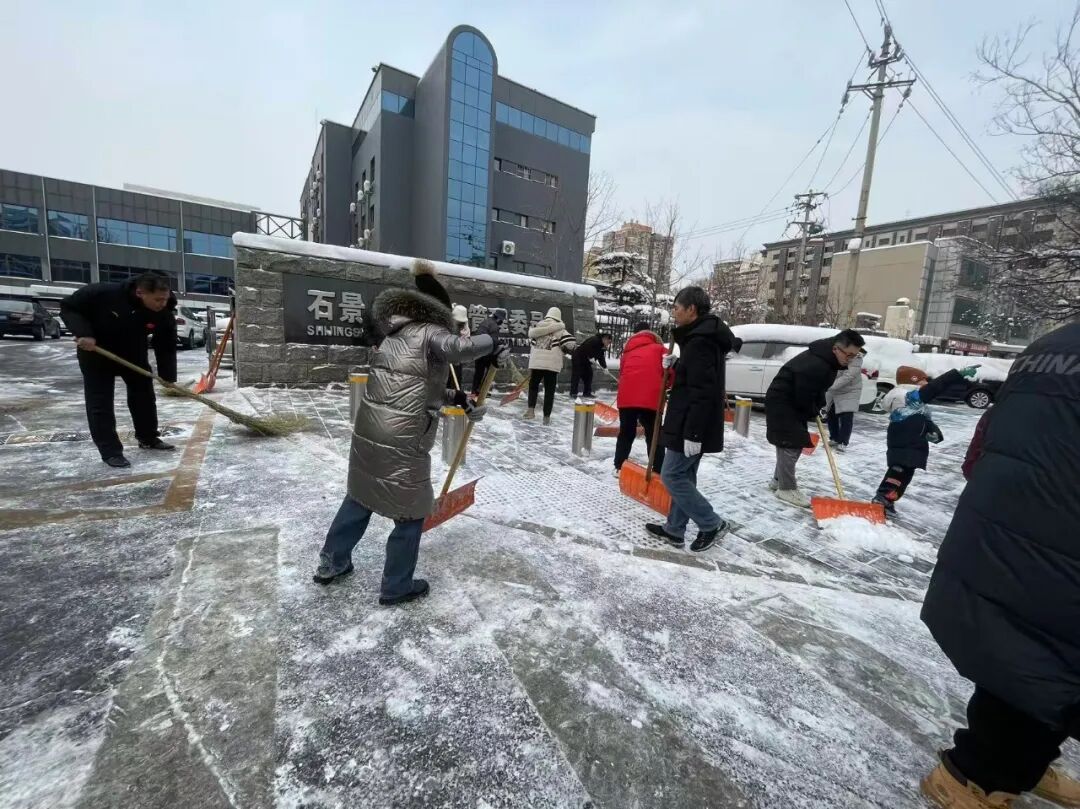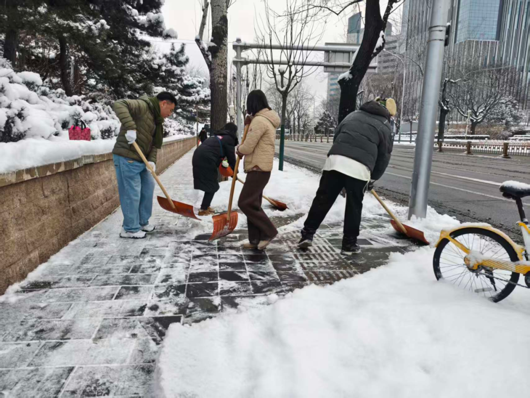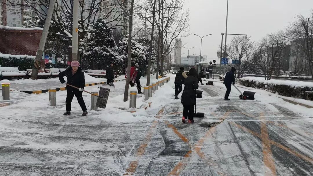 石景山区各单位各部门积极响应,落实“门前三包”责任,干部职工不畏严寒,针对办公区出入口、门前责任路段、非机动车停放区等关键区域,保障清扫工作不间断,全力保障道路安全。