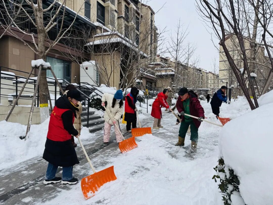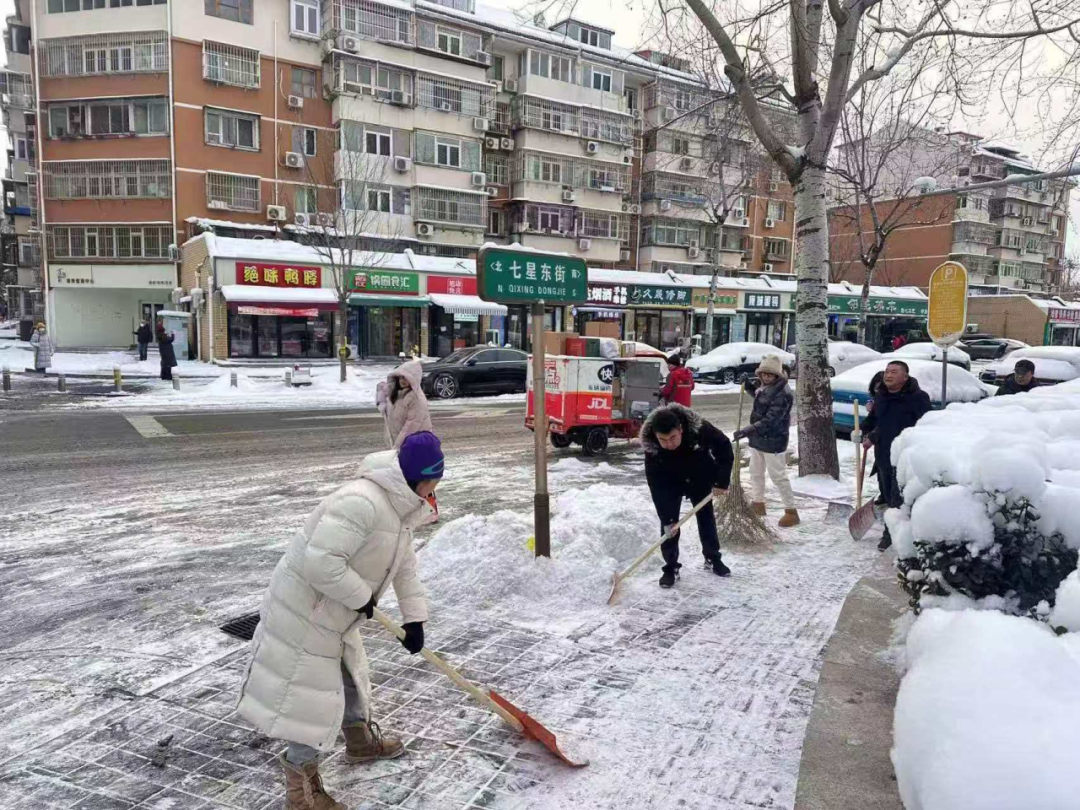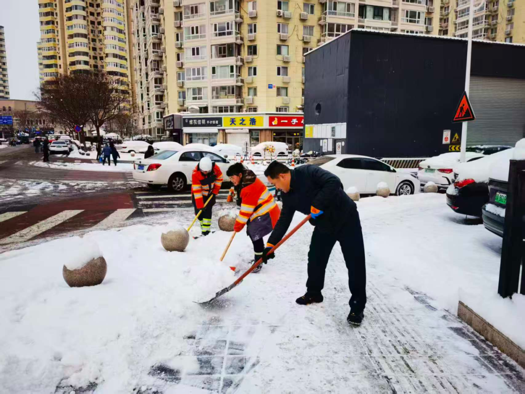 在充分发挥专业队伍力量的同时,开展广泛动员,凝聚社会各界力量。各街道积极响应,组织物业、志愿者、在职党员及社区工作者组成清扫队伍,加强小区门前清扫;党政机关率先垂范,组织干部职工走上街头清雪除冰,保障城市道路畅通、市民出行安全。区城管执法局全员在岗,各街道综合行政执法队下沉一线,通过逐户走访、现场讲解等方式,向沿街商户宣讲扫雪铲冰要求,督促落实“门前三包”责任,共发动门前三包商户超19000余人次,发动社会单位300余家。