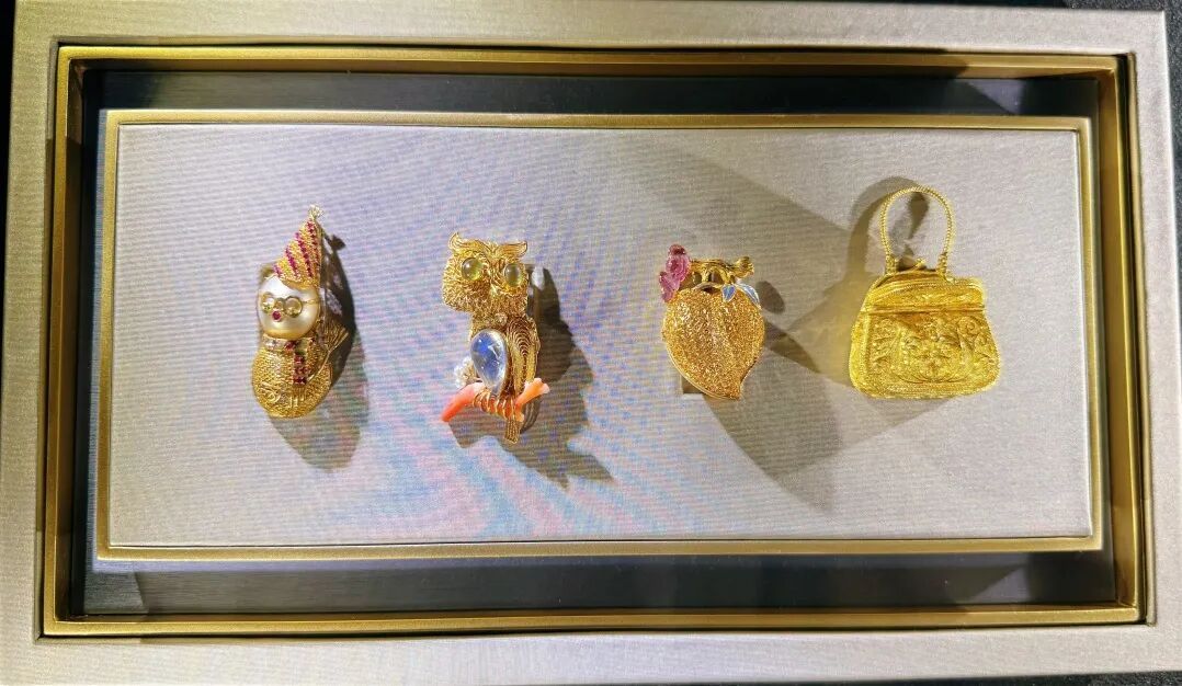 “传统为骨,现代为韵。”杜建毅如此诠释创作理念。他拿起一件用18K金制成的花丝镶嵌作品解释道:“市场上首饰多用24K金,质地过软,难以做出精细的结构。用18K金既保持了精细度,又增强了实用性,让作品变成可以日常佩戴的艺术品。