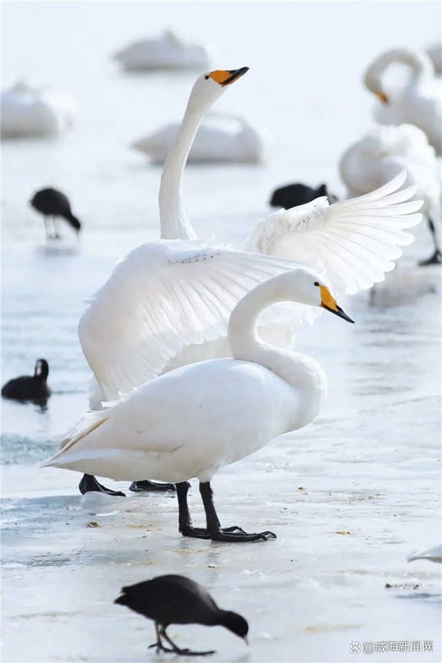 它们引吭高歌,它们翩翩起舞,这里没有噪音、远离污染,天地之间只有落雪纷纷与天鹅的鸣叫。伸手接过一片雪,便仿佛触摸到了柔软的羽毛,雪花融化在掌心的温度,或许是你与这些自然生灵正“心意相通”。