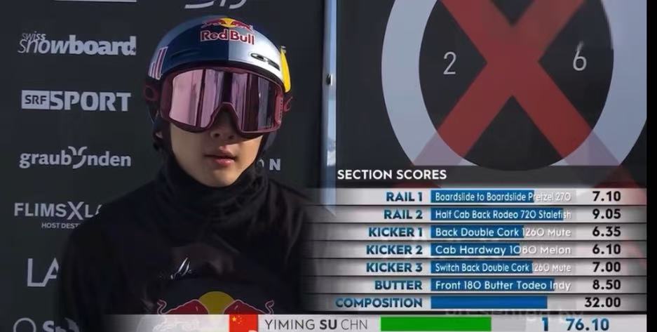 从预赛头名晋级的苏翊鸣,在半决赛中虽有失误,但仍有惊无险地压线获得了决赛资格。根据倒序出发规则,他在决赛中首位登场。