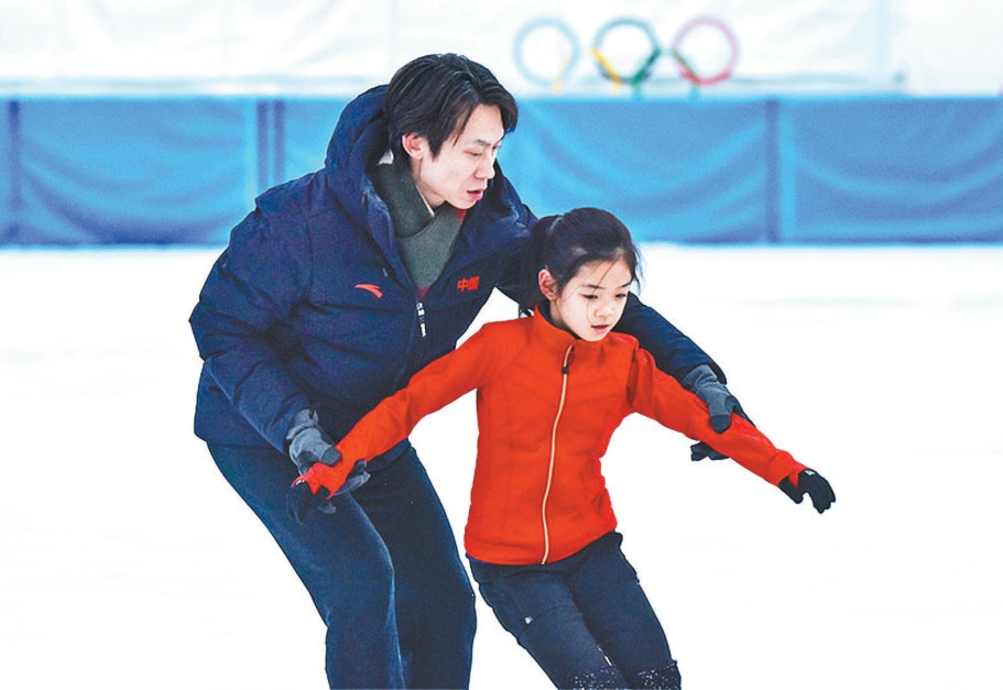 佟健在冰上艺术中心悉心指导学生