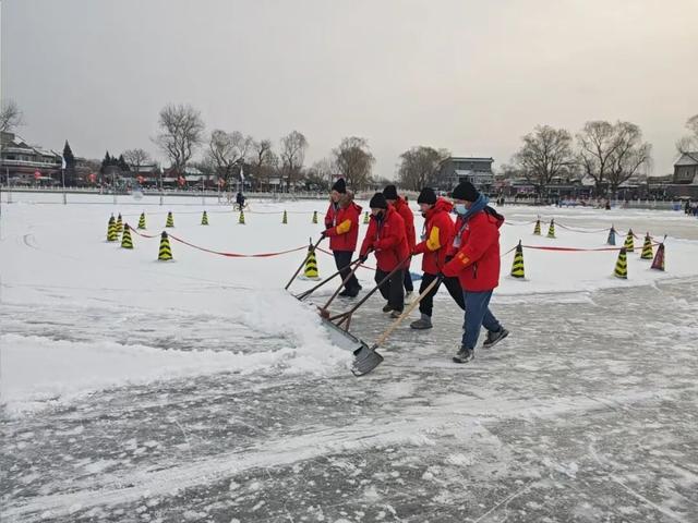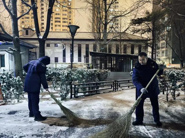 蓟城山水集团闻雪而动,全面开展扫雪铲冰等各项保障工作。23支扫雪铲冰队伍,510人备勤值守,所有除雪车辆、机械设备均提前保养调试,各类作业工具、警示标识等物资储备充足。集团扫雪铲冰队伍实行24小时轮岗轮班,持续加强公园绿地巡护;针对所辖公园及相关广场内的积雪、结冰区域,将按照“先主路、后支路、再角落”的作业顺序,对公园范围内不能及时清理的区域,设立警戒线和警示标识。同时,集团下属各公司扎实推进“门前三包”责任落实,组织人员清理毗邻公共道路、门前人行步道、路外停车场,以及金融街、西单商圈等重点区域冰雪,为往来市民扫清障碍;此外,集团持续开展对所辖点位管线设备、标志系统等的雪后特巡,并加强对什刹海、广阳谷等点位的现场秩序引导,为市民游客提供必要的服务帮助,确保降雪后城市运行平稳有序。