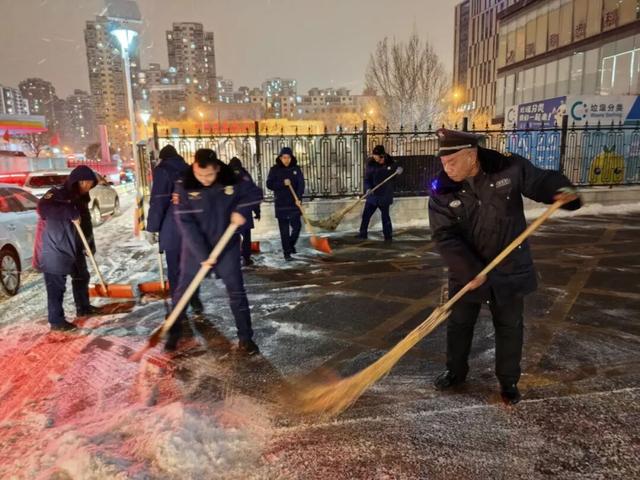 区城管执法局统筹全区城管执法系统牢固树立“雪情就是命令”的意识,做到以雪为令、闻雪而动,雪下即扫、随下随扫。各街道综合行政执法队按照街道工作安排,迅速投身扫雪铲冰第一线,开展扫雪铲冰工作,对“门前三包”责任单位履行扫雪铲冰责任情况,以及人流密集地区、禁用融雪剂等区域开展督促检查,确保责任区市容环境及时恢复。