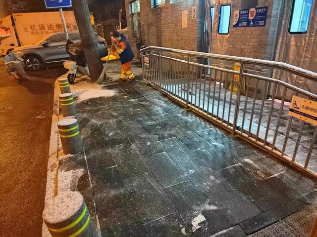 区城市管理委按照“一路一策”要求,对全区179条主次干道、1447条背街小巷、45座过街天桥等区域提前摸排排雪污水窨井、积雪堆放点位,压实各点位责任,做好人员、物资、应急通讯准备。聚焦重点区域,提前部署作业力量,加密巡查频次,严防积雪结冰,保障道路交通安全畅通。在快速清理主次干道及核心区域积雪过程中按照“先通后净、梯次推进”原则,推行机械化联合作业模式,科学调配各类专业除雪设备。目前,区级层面组建完成应急队伍150人,街道层面共计组建应急队伍1100余人,随时应对突发情况高效处置。同时,广泛发动社会力量积极参与扫雪铲冰工作,现已动员“门前三包”单位6882家11000余人,确保辖区内无扫雪盲区。此外,区扫雪办针对蓝色暴雪预警按照《扫雪铲冰预案》开展夜查工作,并在本轮降雪停雪后持续开展相关检查,发现问题区域立即要求属地作业队伍进行扫雪铲冰作业。