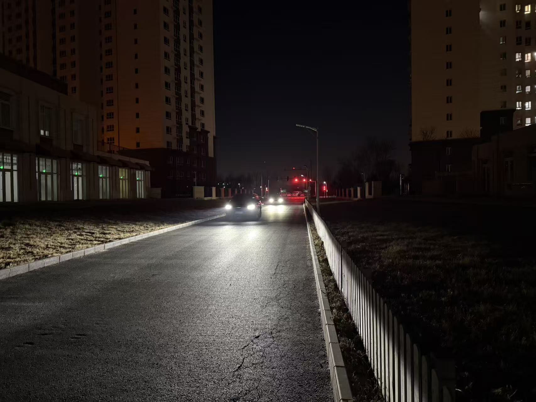 从朝阳区青荷里宸欣园小区北门一出来,街边一家超市和一家理发店的灯牌虽然亮得有些刺眼,但居民们并不反感,因为这两家店铺的灯牌照亮了大家的回家路,出了灯牌照射的这片光亮,居民就要在小路上摸黑前行了。