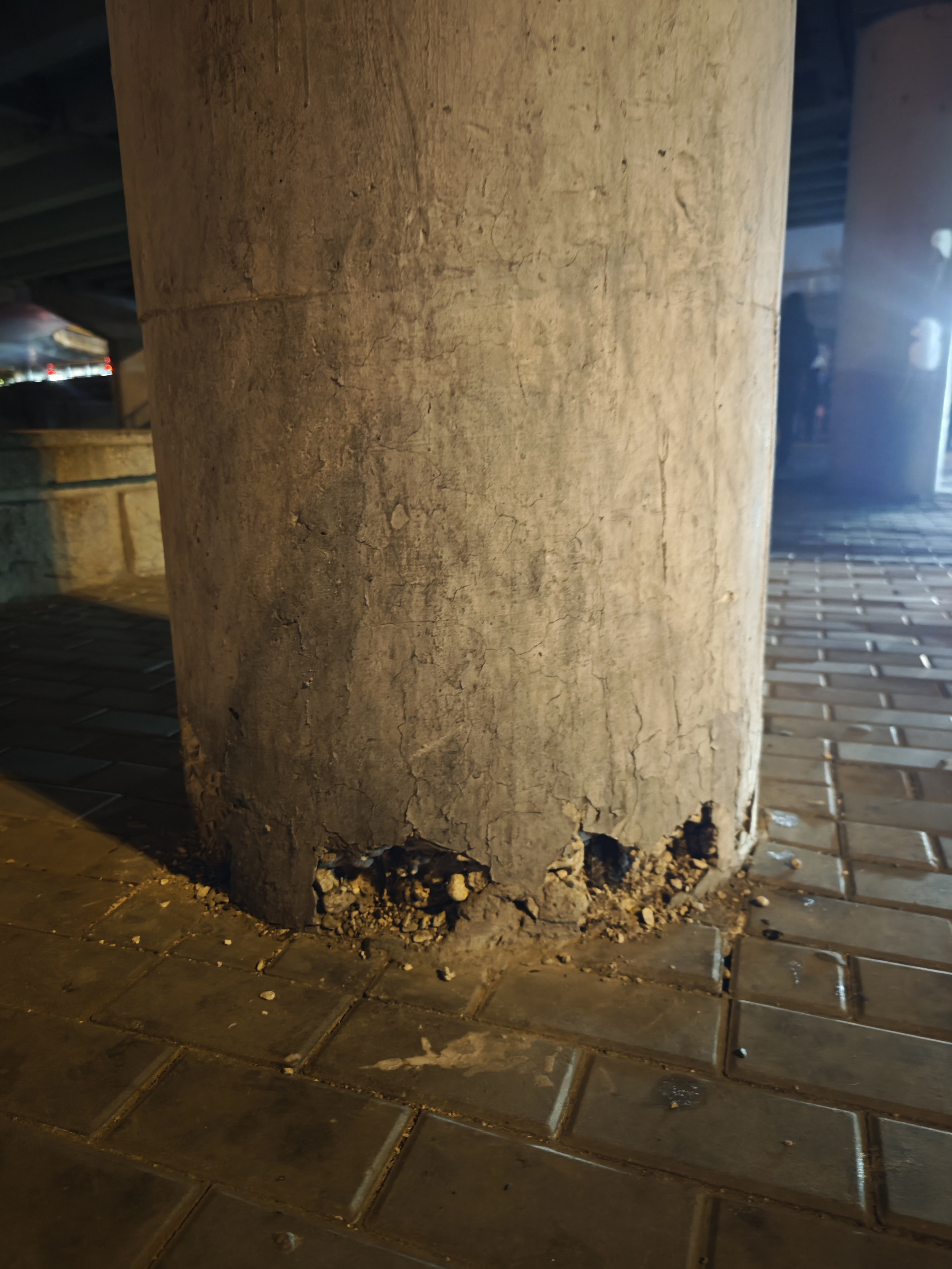 一名正在候车的乘客说,柱子的底部破损已经有一段时间了,“如果不尽快修,情况可能进一步恶化,不知是否会威胁天桥的安全?”