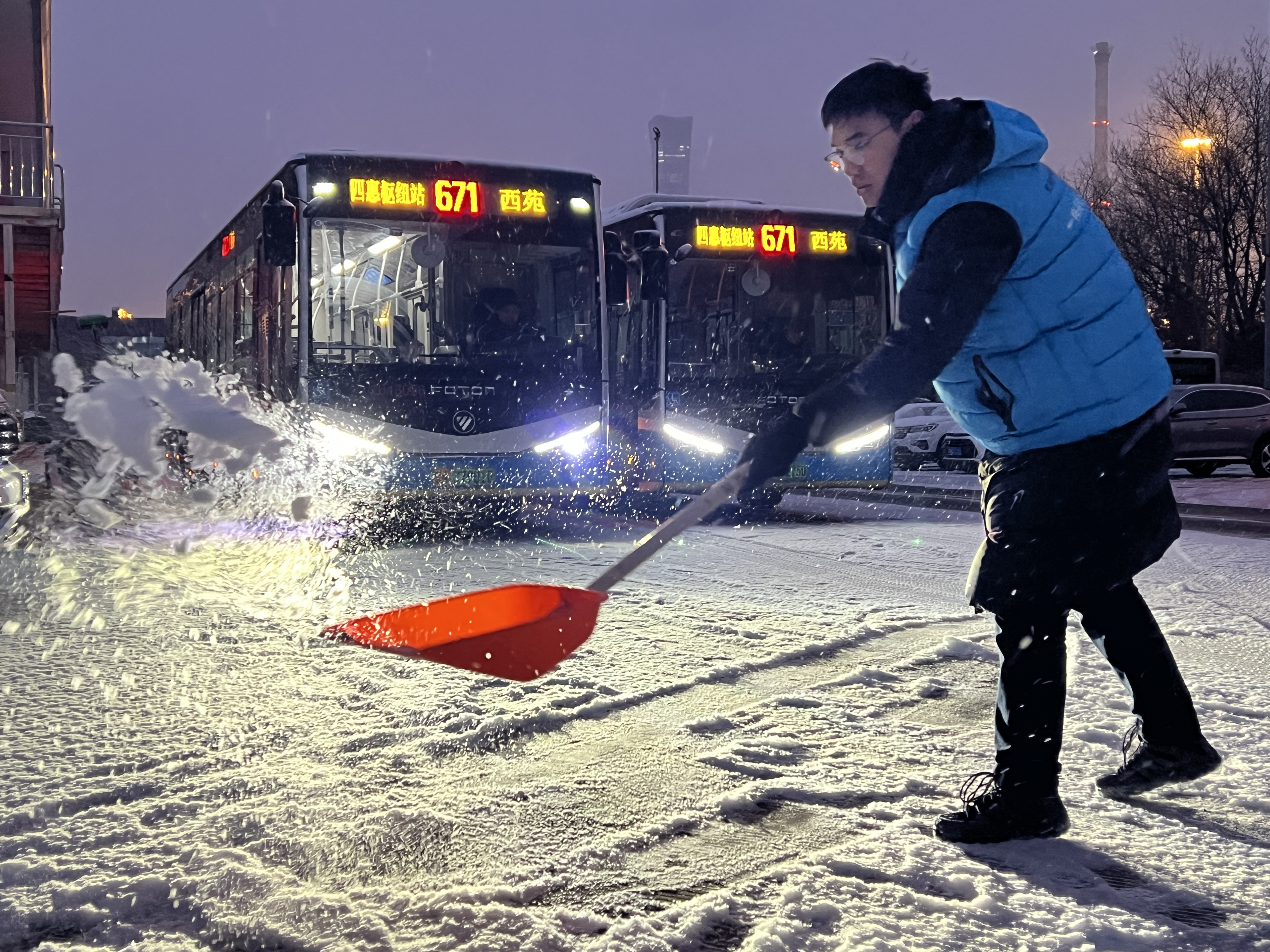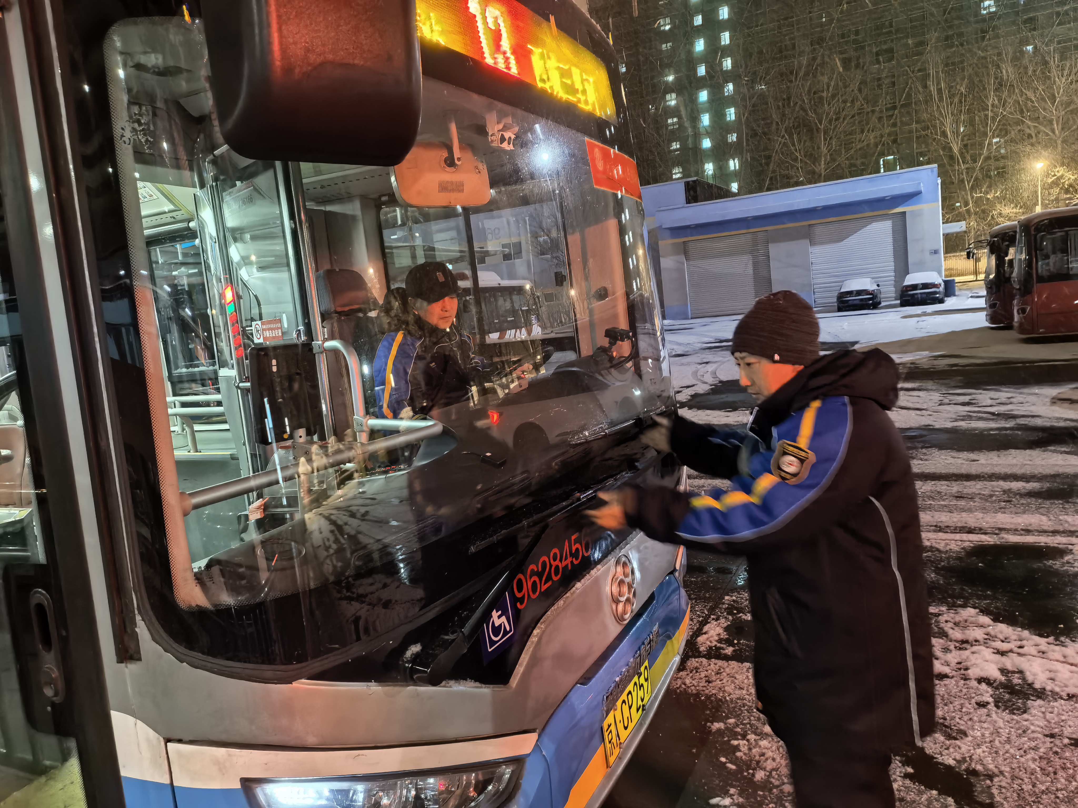 降雪期间,公交集团针对3.2万人次驾驶员开展雪天行车安全专项叮嘱;在全市重点道路、桥区、公交站台等区域设置507处安全服务岗点,组织1000余人次管理人员及乘务巡检员现场值守,指挥引导车辆安全通行并提供站台便民服务。同时,所有运营车辆全面开启车厢暖风系统,为100余条重点线路的车厢铺设1.1万余个座椅小棉垫,并利用运营间隙及时清理积雪,为乘客营造温暖整洁的乘车环境。