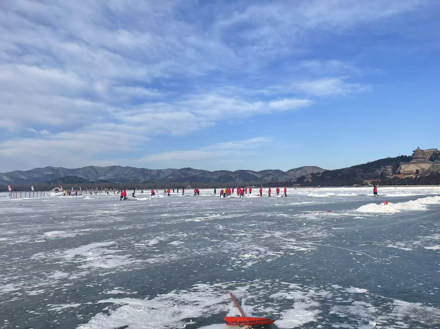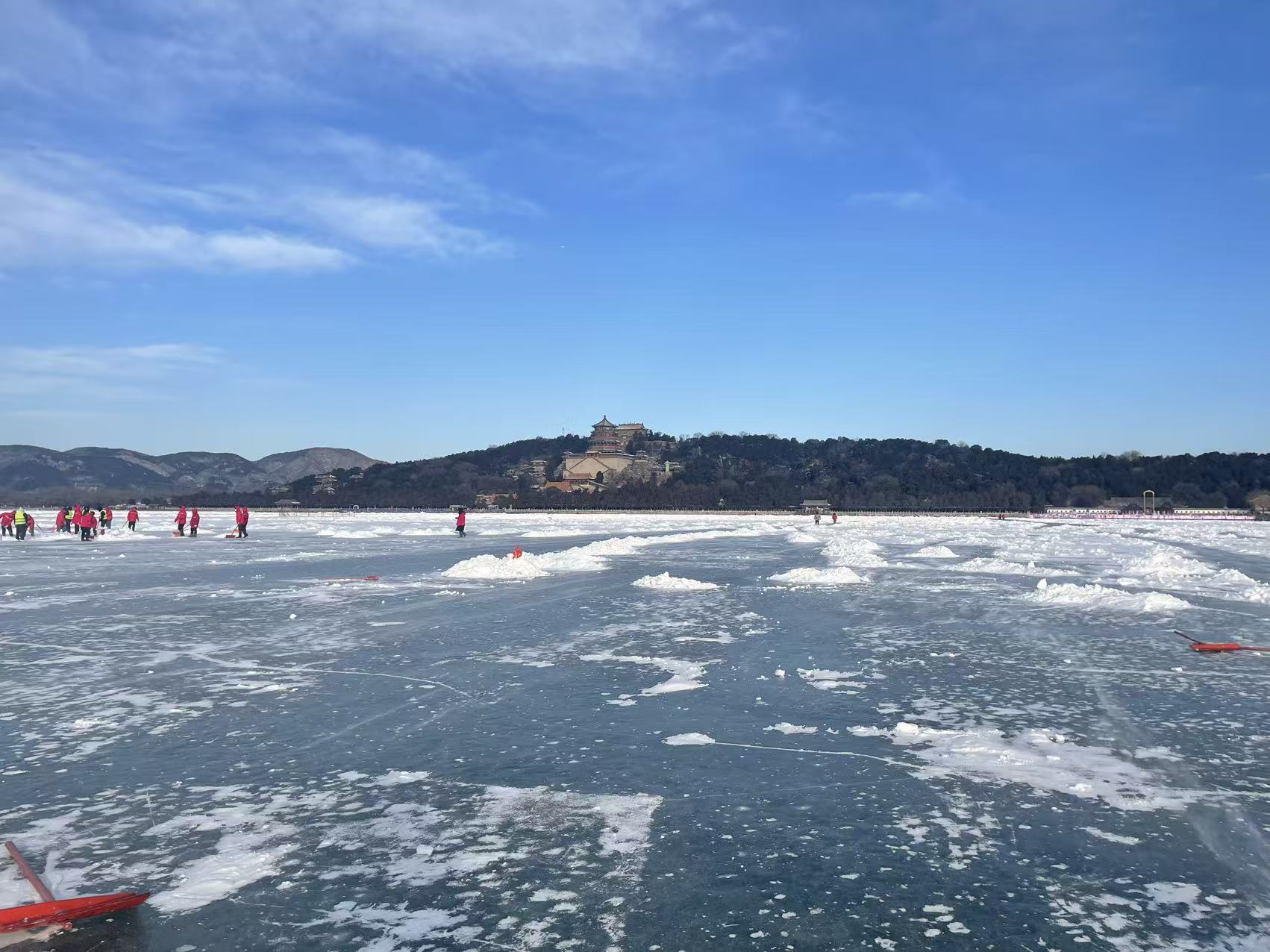 颐和园经营科科长高悦介绍,作为北京市内规模最大的天然户外滑冰场,颐和园昆明湖冰场今年受前期气温较高的影响,开放面积从往年的35万平方米缩减至16万平方米,但依旧热度爆棚。开放首日,接待量就达到1.4万人次。