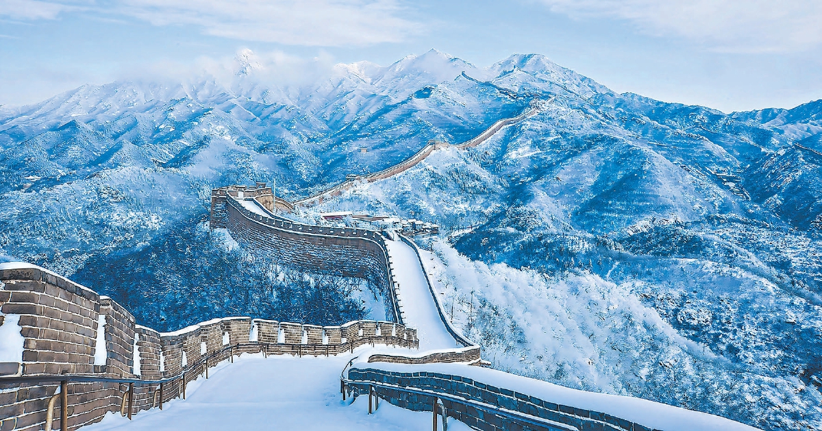 延庆长城壮丽雪景。