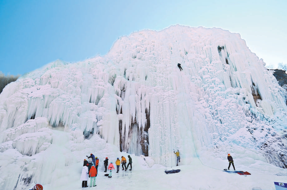 玉渡山攀冰基地吸引爱好者前来。