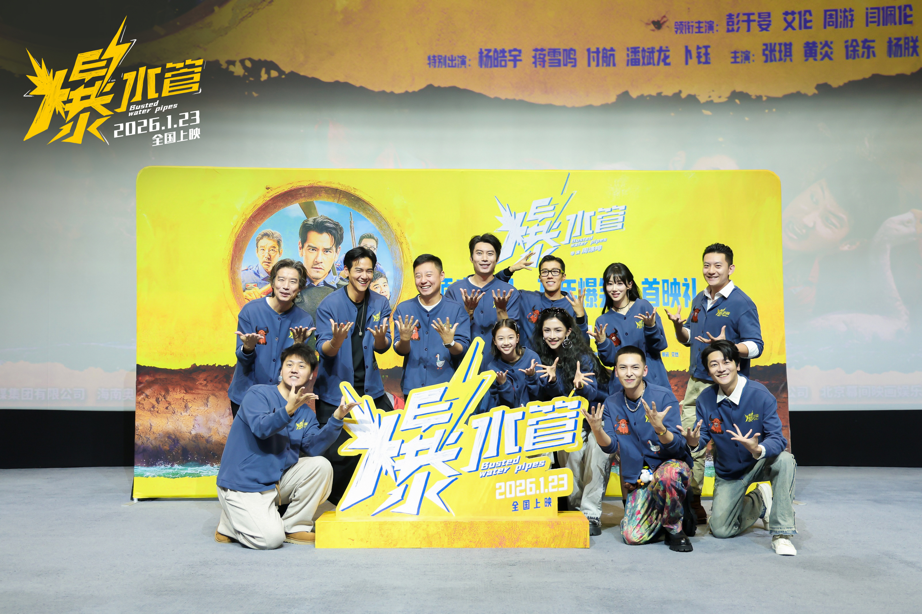 犯罪喜剧《爆水管》日前在北京举行了“顶疯相见,开年爆笑”主题首映礼,正式解锁了2026年的第一场爆笑。导演周涤啡,演员彭于晏、艾伦、周游、杨皓宇、蒋雪鸣等齐聚一堂,和观众一起畅聊电影台前幕后都爆梗的欢乐故事。