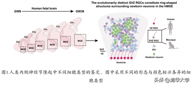 1月15日,清华大学生命科学学院米达副教授团队联合中国医学科学院北京协和医院朱兰院士团队在《科学》(Science)发表了一项突破性研究“脑室下区放射状胶质细胞维持人脑抑制性神经元的持续产生”。该研究聚焦人脑动态发育过程,基于珍贵样本系统绘制了人类大脑内侧神经节隆起(MGE)脑区的细胞发育图谱,首次在人类胎儿大脑中发现了一类独特的神经干细胞类型——SVZ RGC(脑室下区放射状胶质细胞),并揭示SVZ RGC在人类妊娠期中持续产生抑制性神经元和神经胶质细胞,从而增加了人类大脑皮层抑制性神经元的数量及比例。该研究为深入理解人类特有的大脑抑制性神经元发育机制和在进化上大脑皮层扩张机制提供了重要理论基础。鉴于抑制性神经元的功能缺陷与癫痫、自闭症等多种神经系统疾病密切相关,这类新型神经干细胞的发现将为制定未来相关疾病的潜在干预策略开辟新的方向。