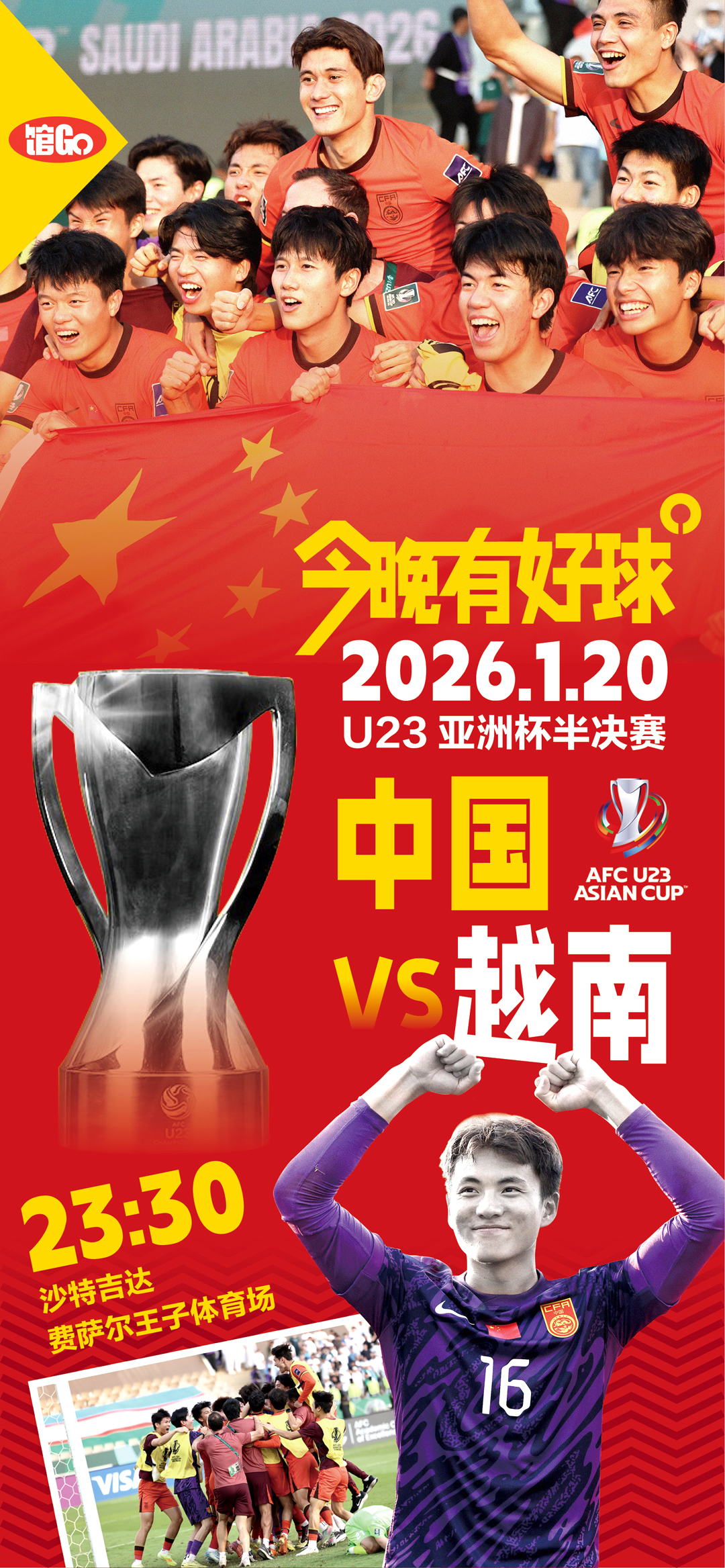 中国队将在2026年亚足联U23男足亚洲杯半决赛中对阵越南队。