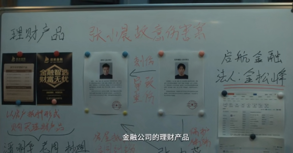影片中,以金松峰为首的启航公司一面以高收益的投资协议为诱饵,蛊惑聋哑老人倾尽积蓄;另一面虚构项目情况,诱导老人们背负高额利息贷款进行投资,从中赚取投资回报与利息的差价。