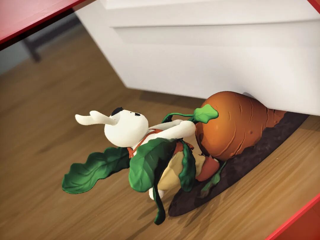 糖糖是一只兔子,也是一款阻门器。灵感源于兔子拔萝卜的活泼姿态,巧妙融入肚兜、祥云、福字等传统元素,为设计注入吉祥寓意与文化意趣。