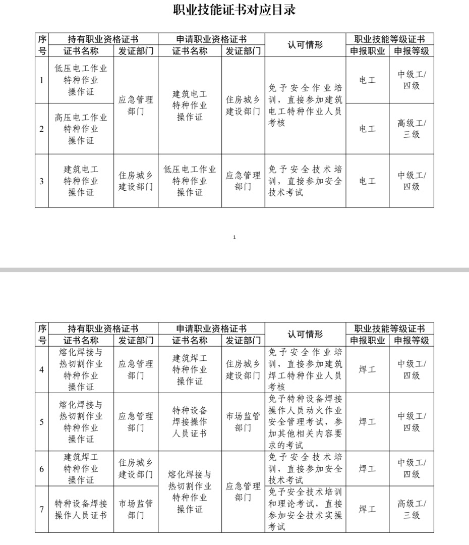 《通知》明确,要推进重点领域职业资格证书互通互认,对已取得住房城乡建设、应急管理或者市场监管等其中一个部门颁发的电工、焊工相关职业资格证书的从业人员,在申请其他两个部门相应证书时,如无特别规定,其他部门可以按照《通知》有关要求,采取免予安全作业培训(或安全技术培训)、免予理论考试等方式简化其考试流程。