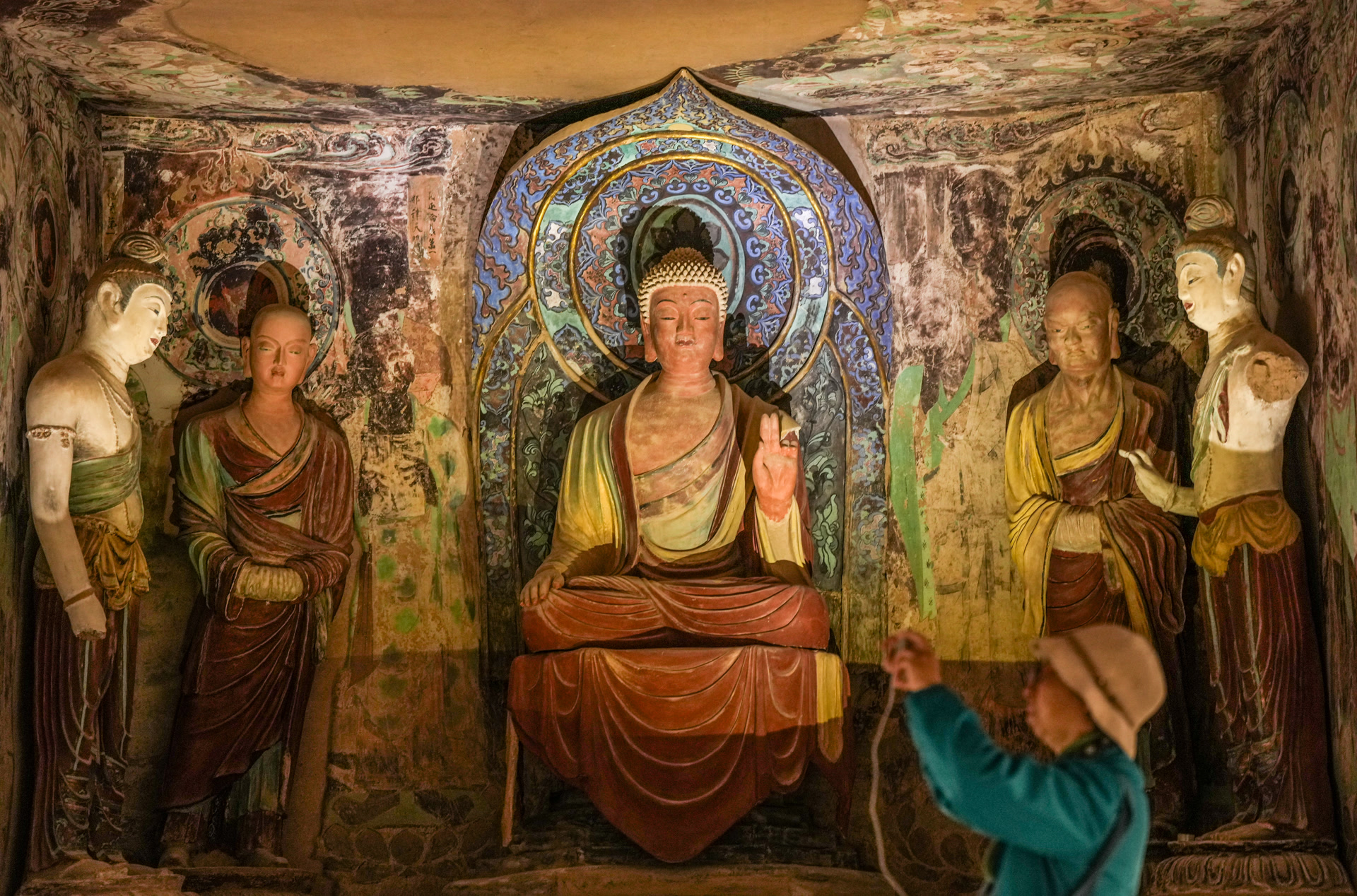 对洞窟中的彩塑