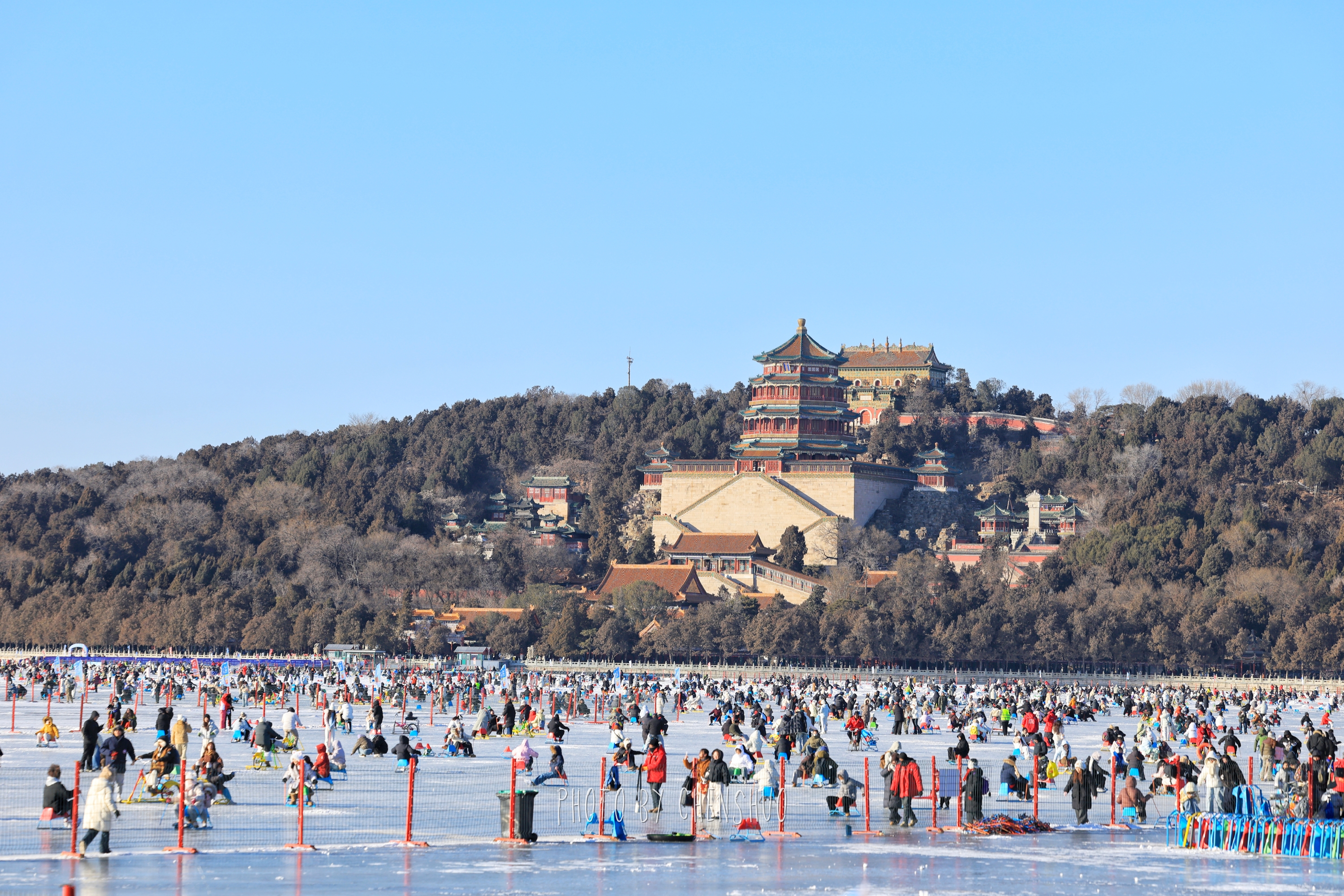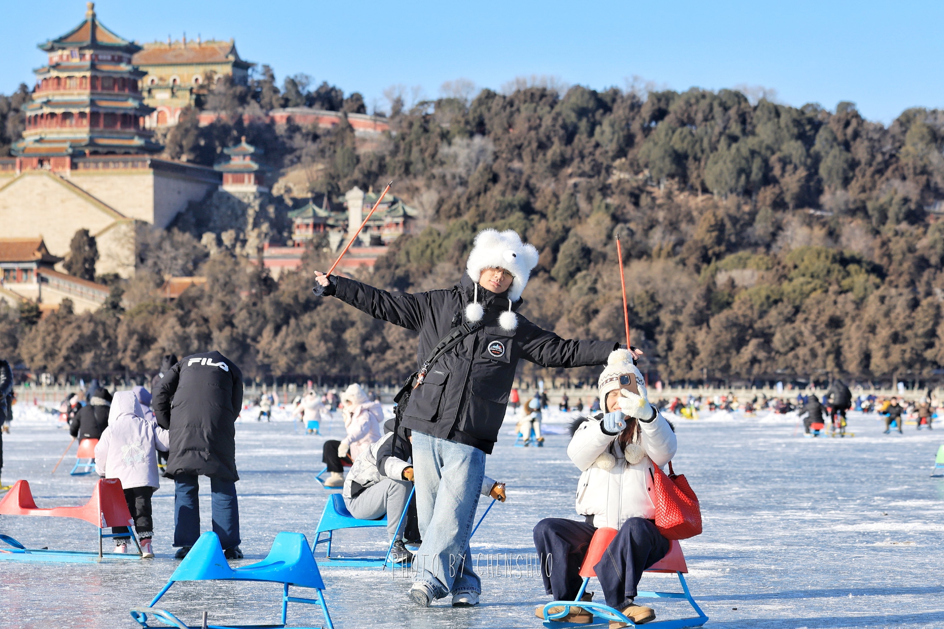 最令人沉醉的,莫过于这里独有的“皇家冰雪画卷”。辽阔的天然冰面与万寿山的层林尽染、佛香阁的巍峨古朴遥相呼应,红墙黄瓦映着皑皑冰面,古风与冬韵完美交融。滑行其间,仿佛穿越千年,既能感受传统“冰嬉”文化的魅力,又能领略皇家园林的冬日景致,更能在户外运动中驱散大寒的寒意,感受生命的蓬勃生机。