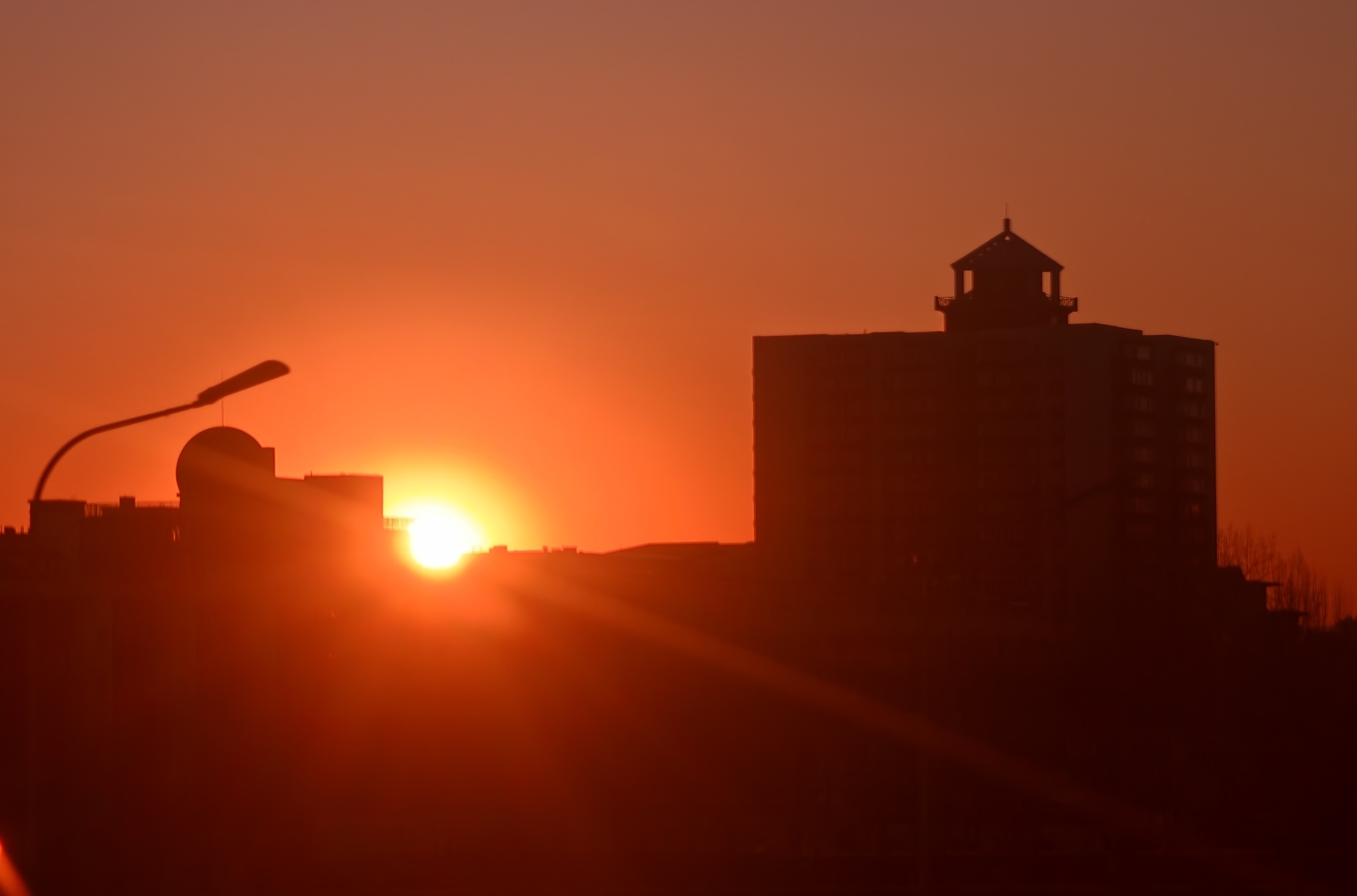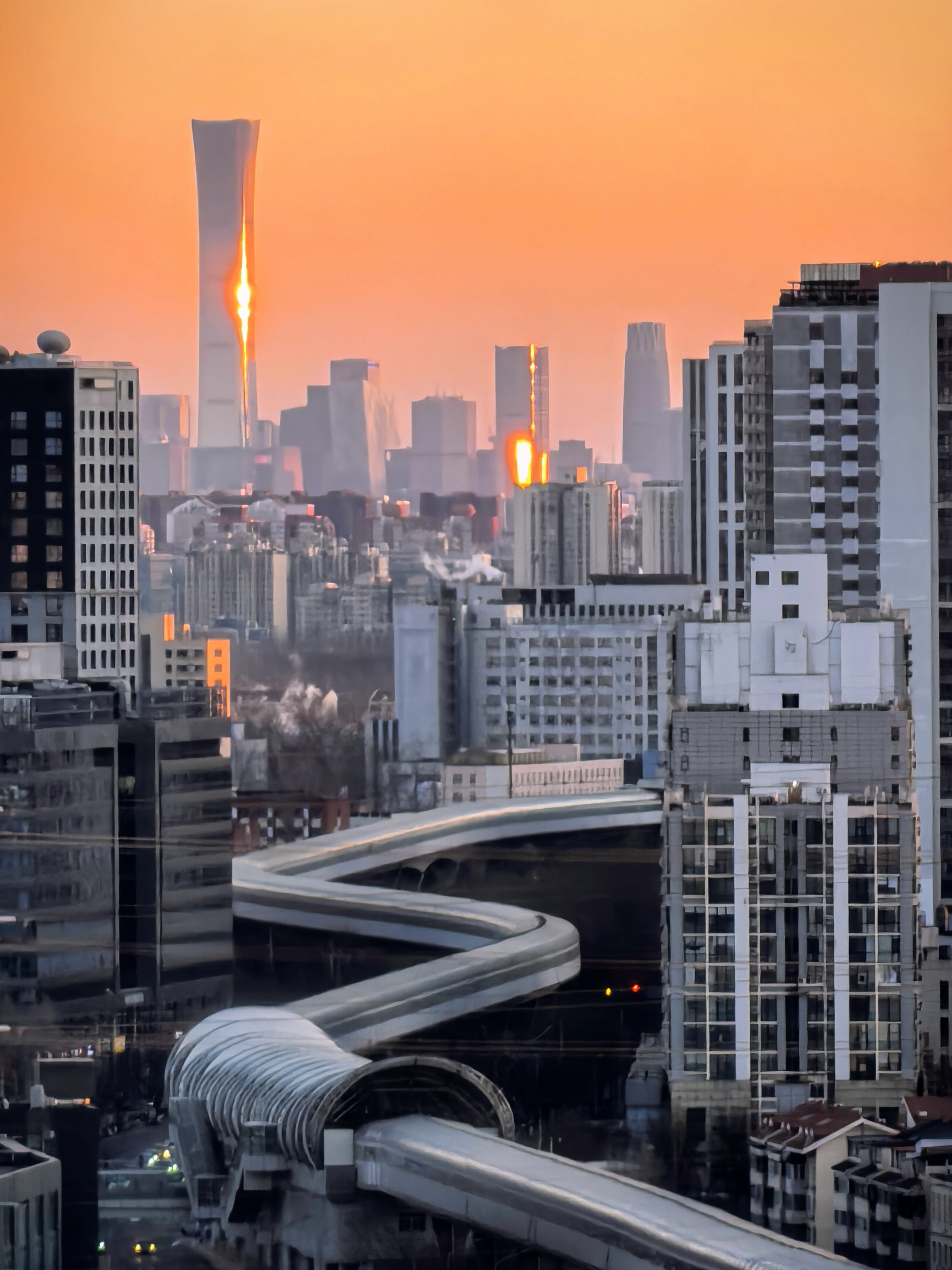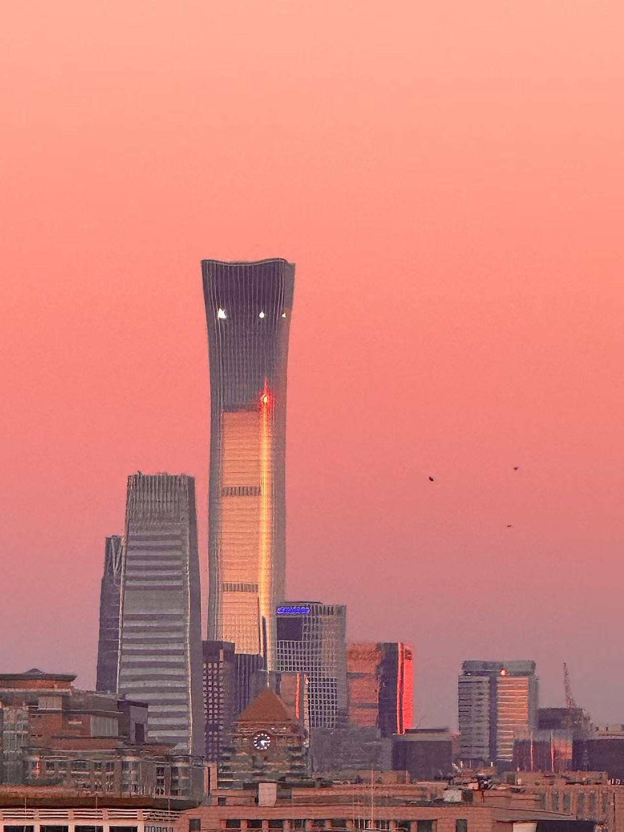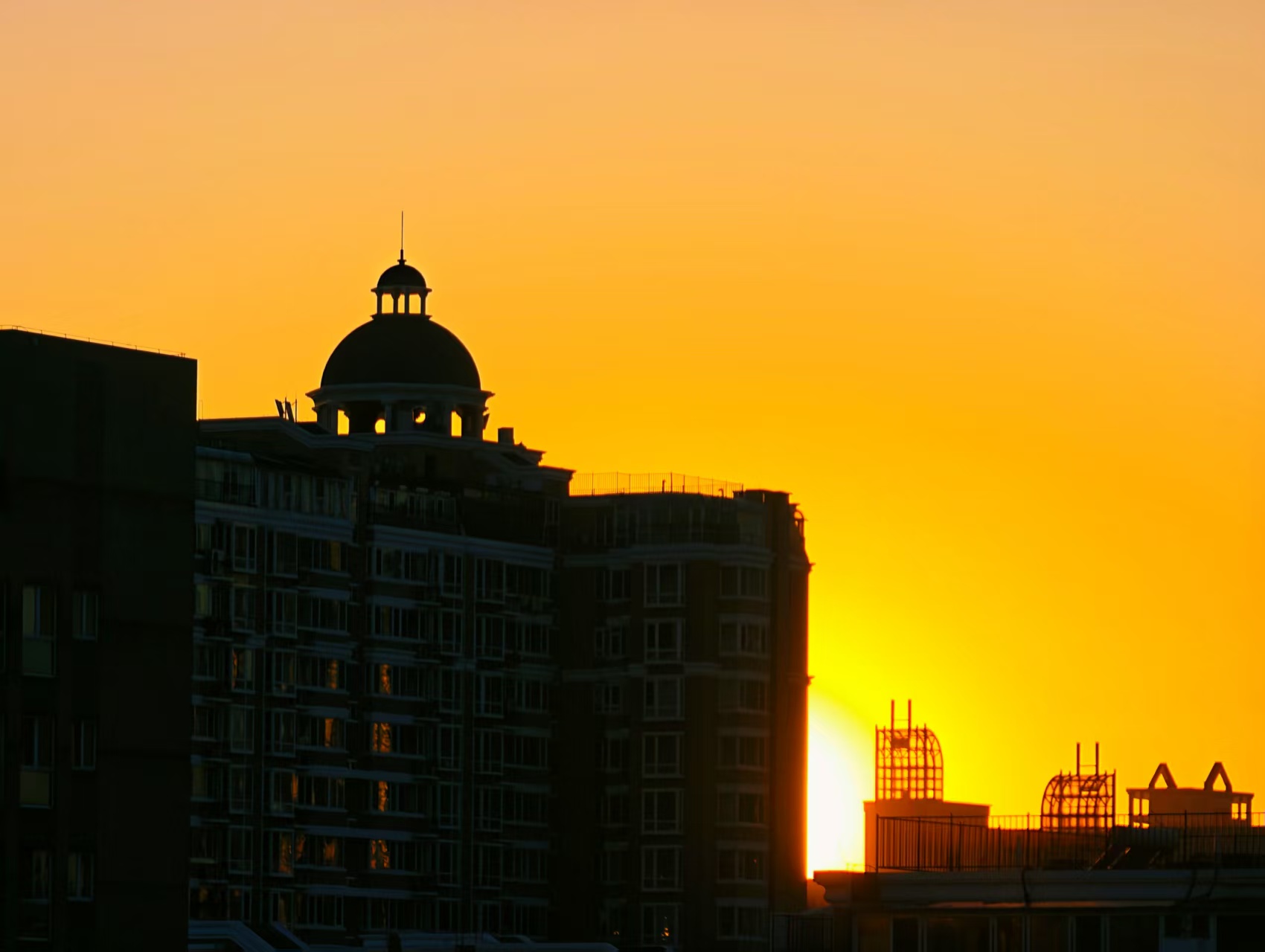 北京时间1月20日9时44分正式迎来大寒节气。傍晚时分,橙色晚霞如约而至,冬日的寒意在暮色中弥漫。夕阳将高楼的玻璃幕墙染成鎏金,在凛冽与暖光的交融中,这座千年古都沉浸在一种深邃而安详的静谧里。