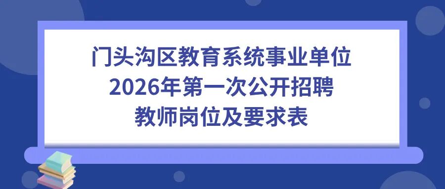 门头沟区教委所属部分事业单位2026年公开招聘共设置教师岗位51个,共计招聘60人,报名时间为2026年1月19日10:00至2026年1月23日11:00。