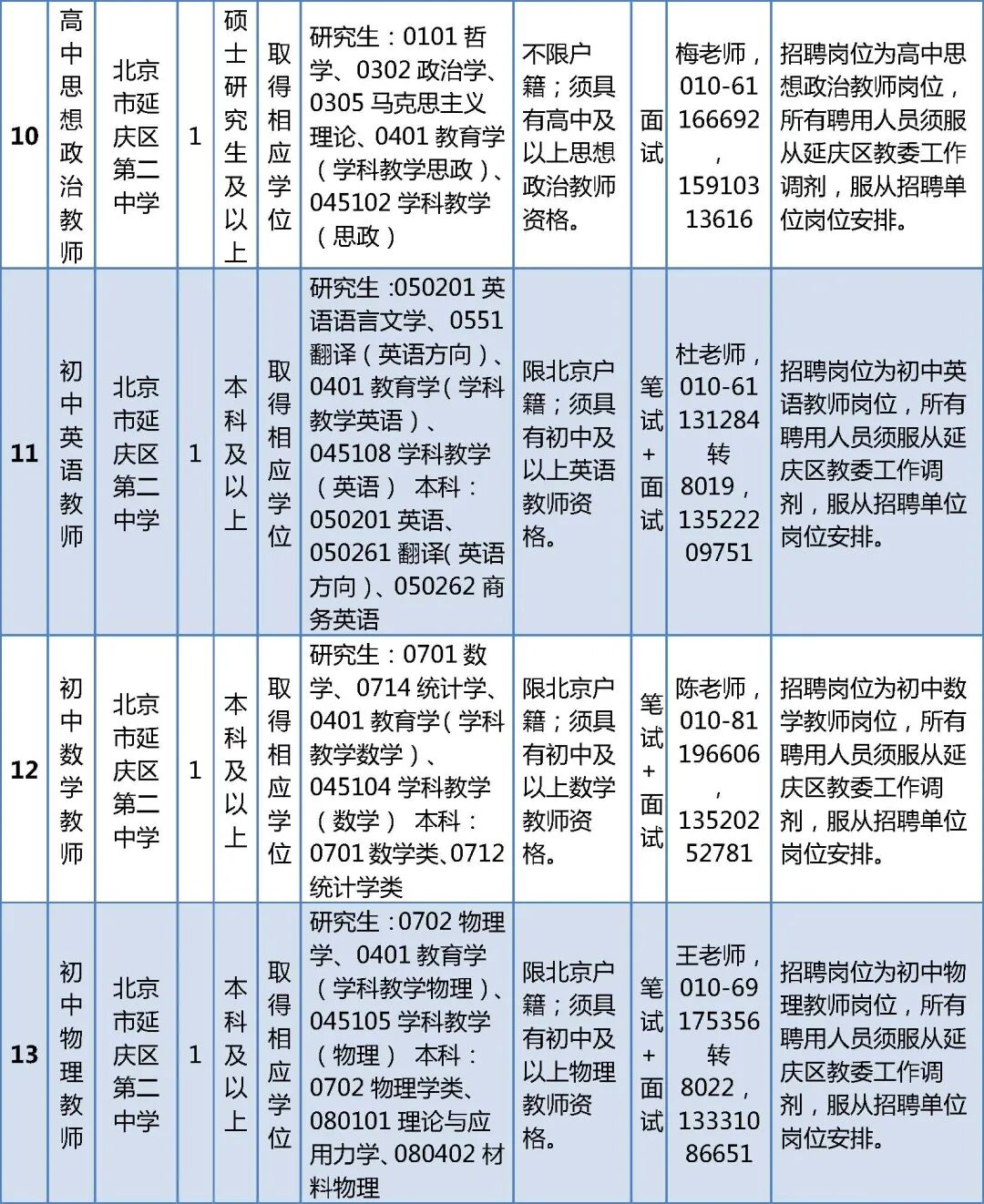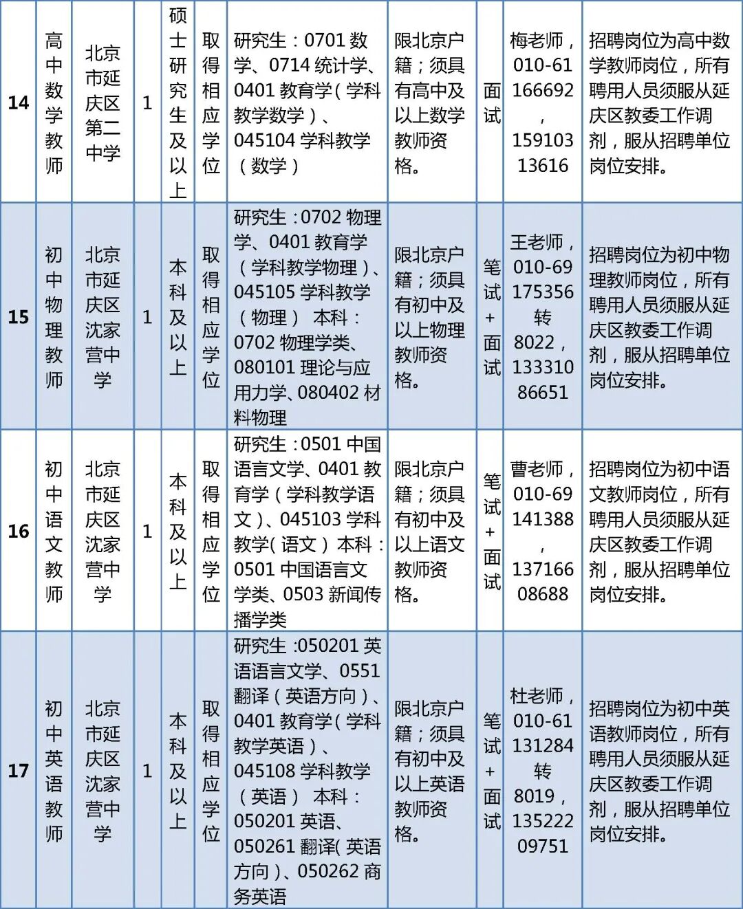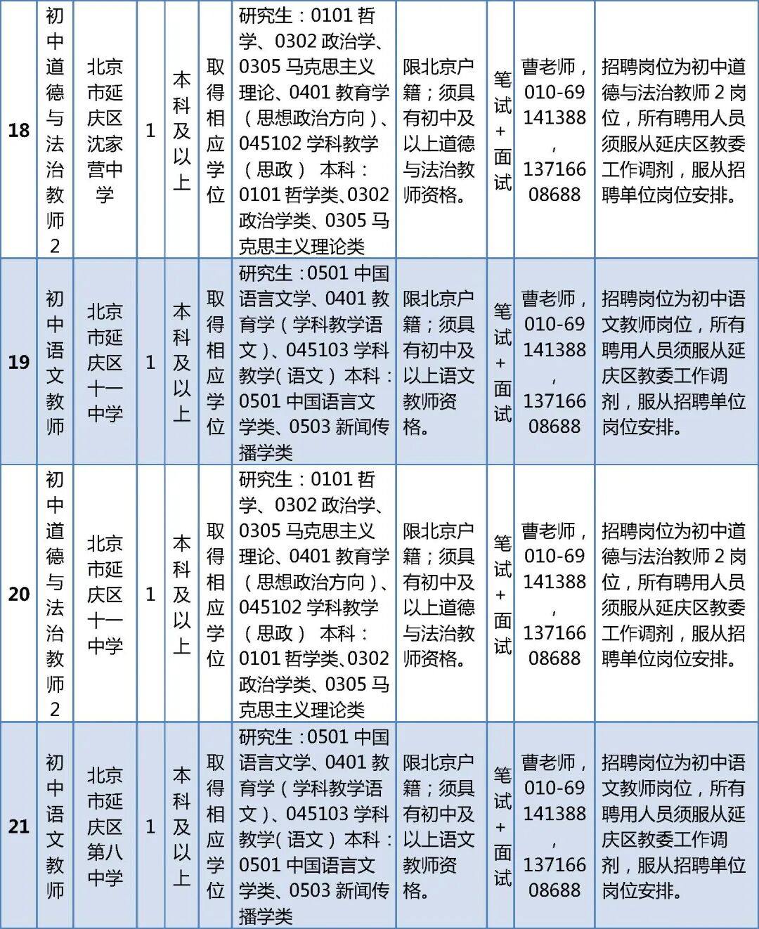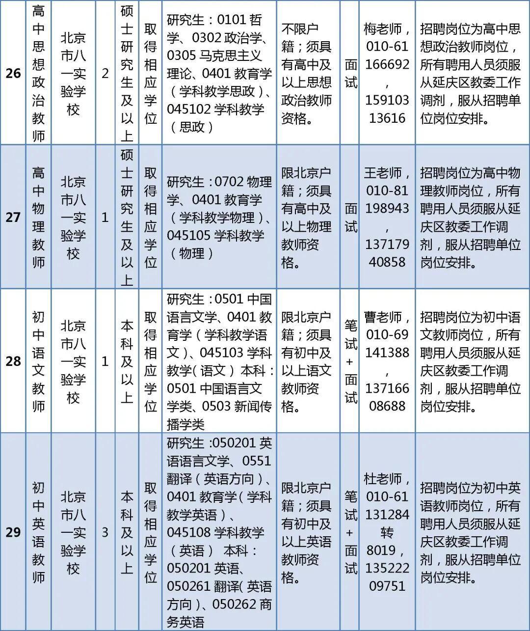 (六)本次招聘公告和具体岗位要求以北京市人力资源和社会保障局和延庆区人民政府网站发布的公告及附件为准,对其他机构转发的招聘公告不做解释。