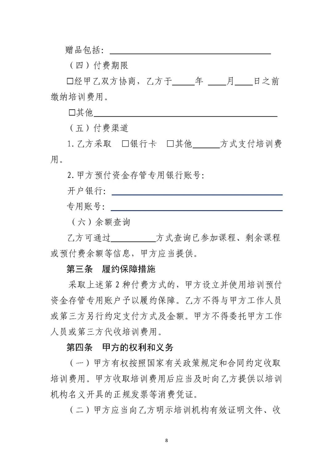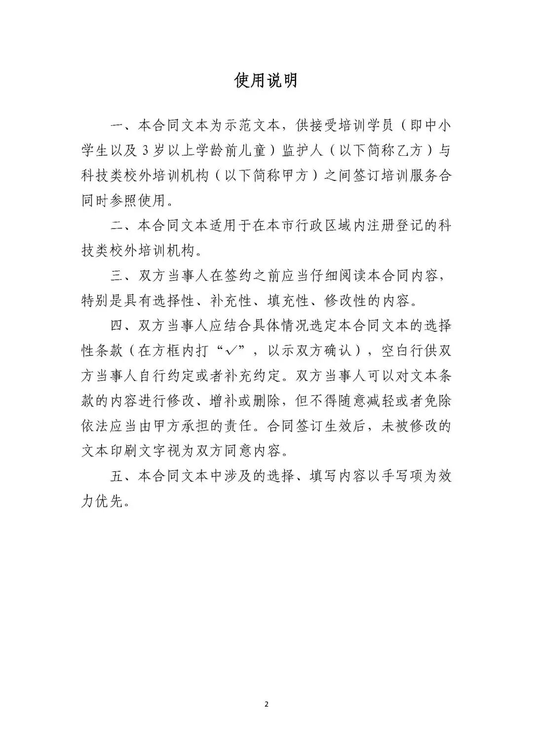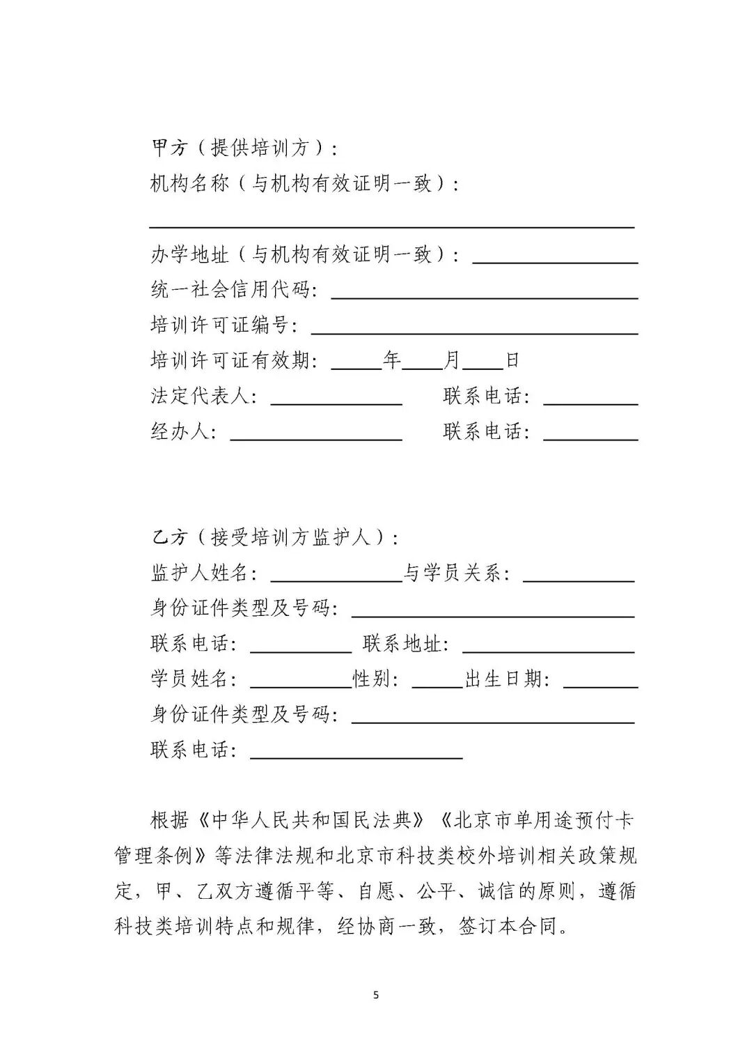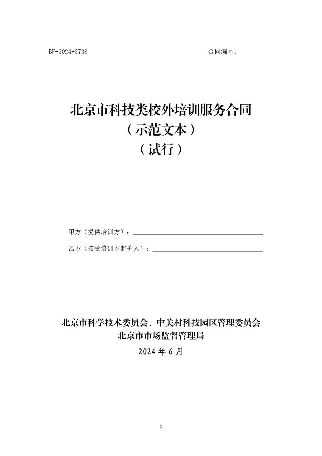 报名缴费前,请参照《北京市科技类校外培训服务合同(示范文本)(试行)》,与培训机构签订规范合同。示范文本可在首都之窗网站,北京市科学技术委员会、中关村科技园区管理委员会网站或北京市市场监督管理局网站免费下载。