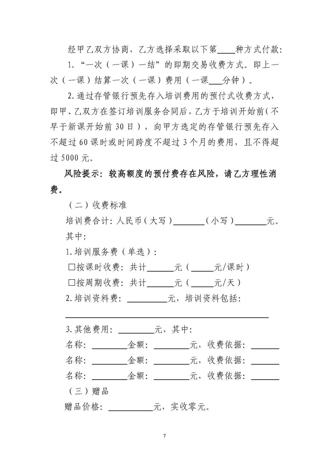 收费额度设上限:按周期收费的,不得一次性收取或变相收取跨度超3个月的费用,且单次收费不超过5000元;按课时收费的,不得一次性收取或变相收取超60课时的费用,且单次收费不超过5000元。
