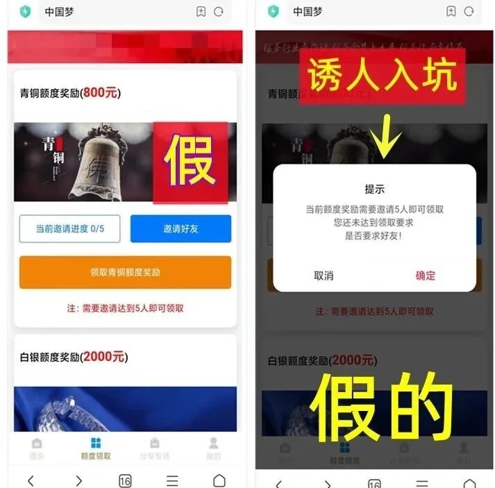 近期有不法分子以“中国梦”为幌子,以发放扶贫资金为由,要求受害人下载涉诈App,诱导受害人扫不明二维码共享屏幕,从而骗取钱财。北京延庆警方发现此类情况后,1月20日提示市民谨防新骗术,避免落入诈骗陷阱。