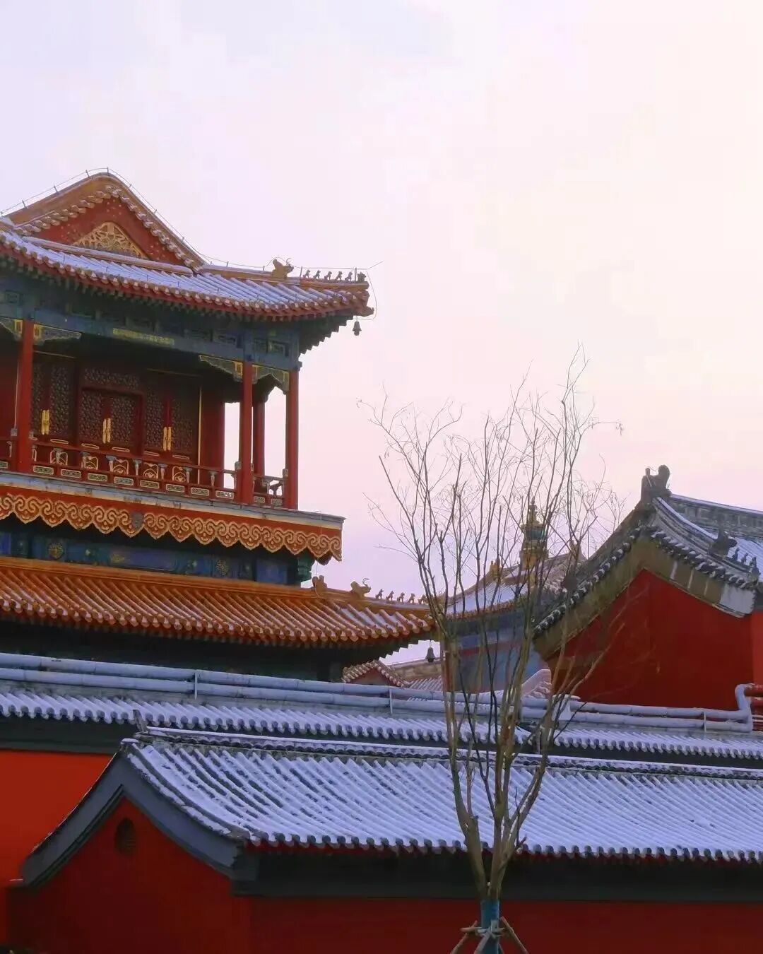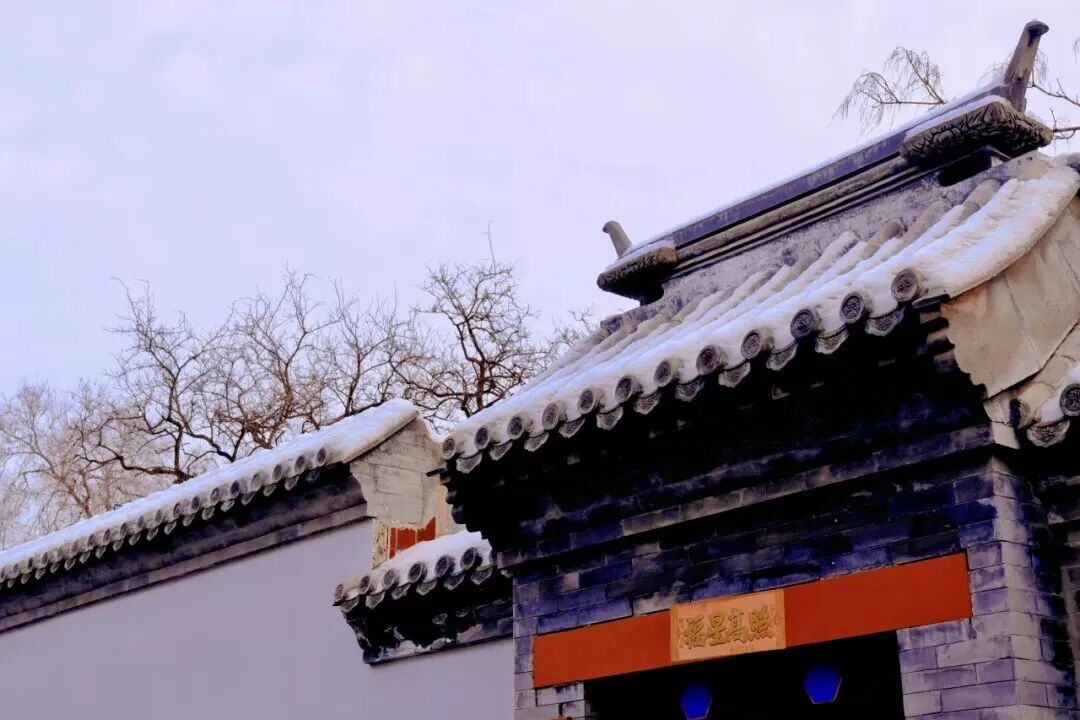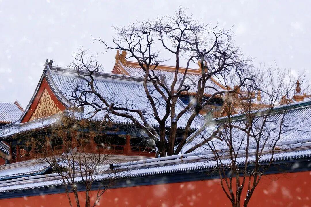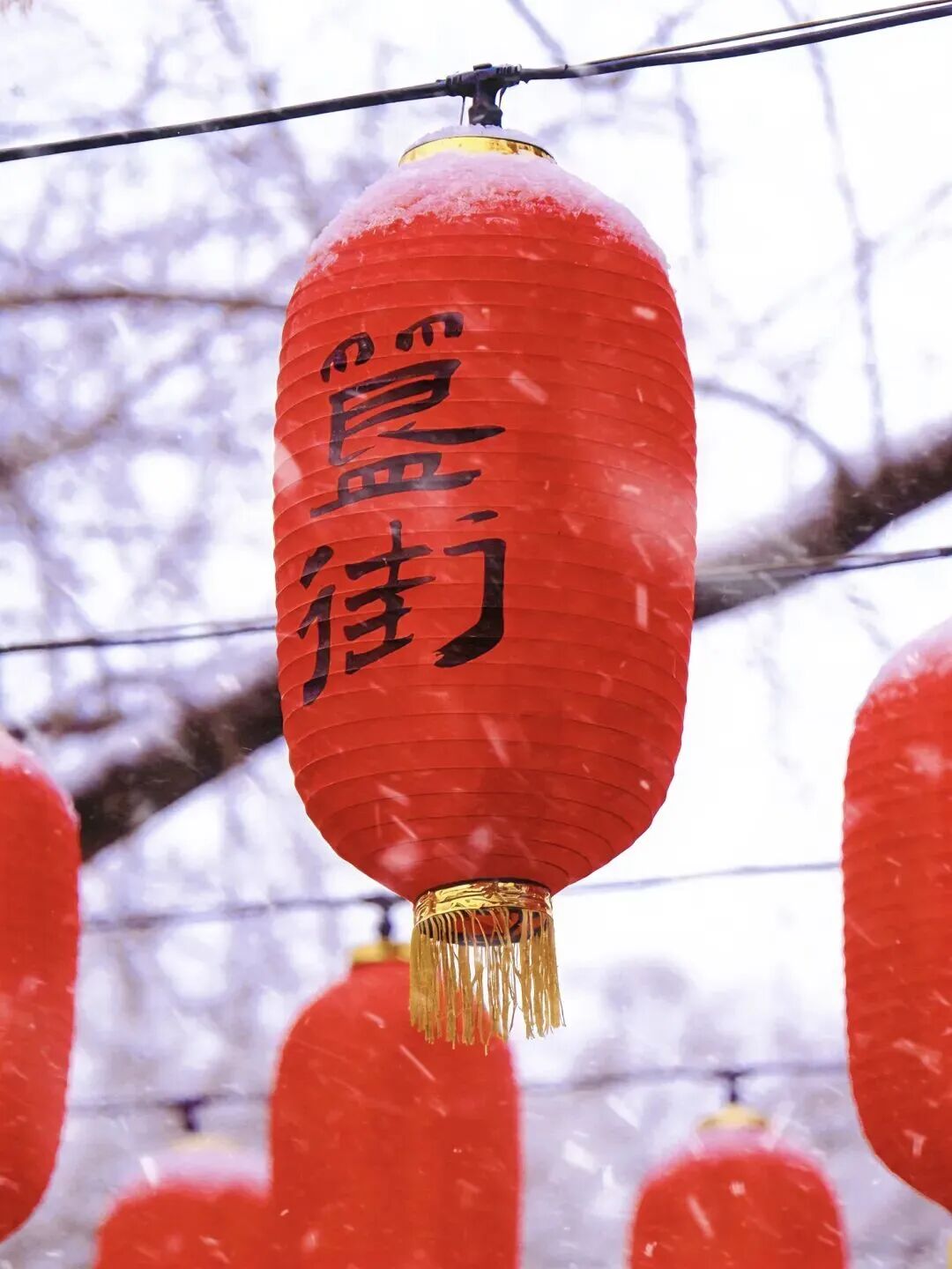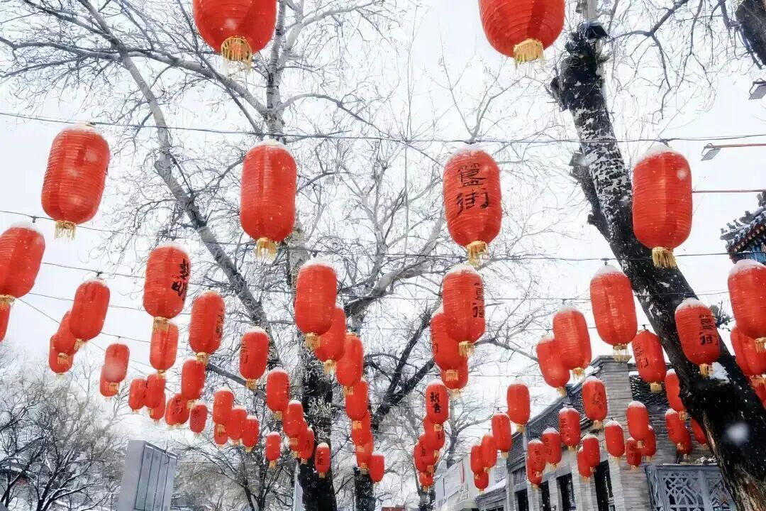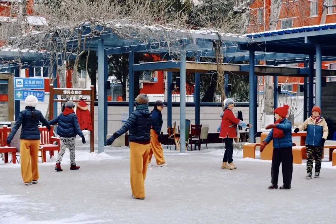 蓝白相间的艺术雕塑覆雪后更添童趣