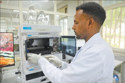 走进埃塞农业部下属的动物产品和投入品质量检测中心,一台台高精度质谱仪、检测设备正在运转。质量分析师法努埃尔介绍,在收到样品后,会进行萃取、净化和分析。他将浓缩样本放入连接电脑的质谱仪自动进样盘,设置程序后,仪器开始运行。大约25分钟后,检测完成,法努埃尔对着电脑屏幕仔细核对生成的报告,确定样品分析结果是否达标。