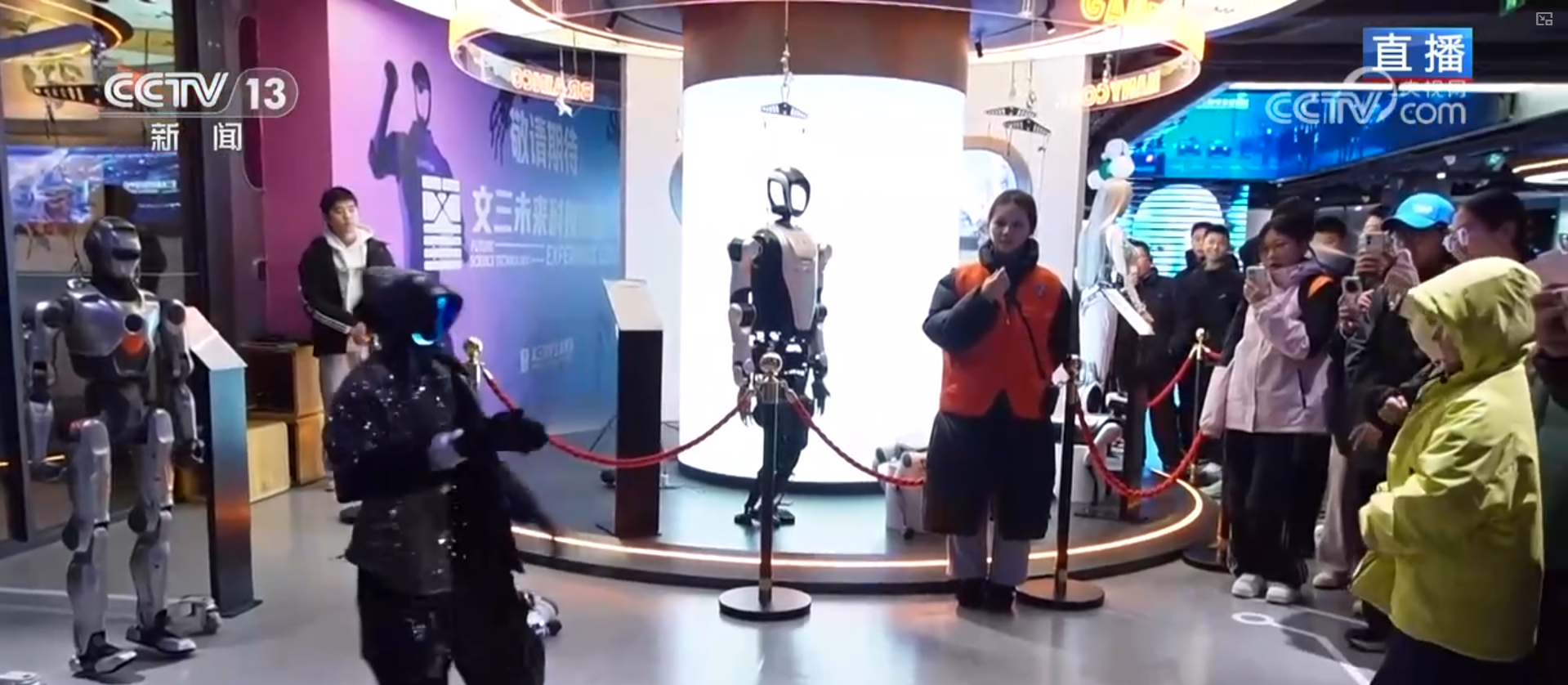 说起杭州的科技创新,您肯定听说过“六小龙”,人形机器人、四足机器人、人工智能大模型等。记者身后这个文三未来科技体验中心,就是围绕“六小龙”建起来的。这儿有八大互动区,机器人展台、训练场、AI体验等一应俱全。如今,它已经成了文三路上一个标志性的打卡点。