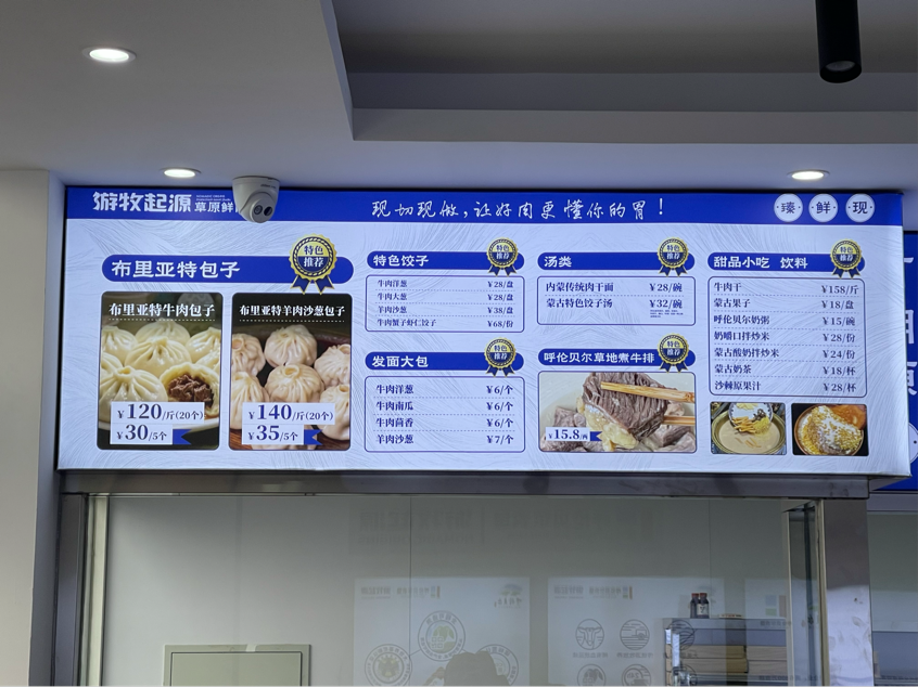 特色面点区极具民族风情,布里亚特包子提供牛肉洋葱、羊肉沙葱两种经典口味,皮薄馅足、鲜香多汁,还原布里亚特蒙古族的传统饮食特色,手工牛羊肉水饺、肉干面则兼顾日常食用场景,让草原风味融入三餐。